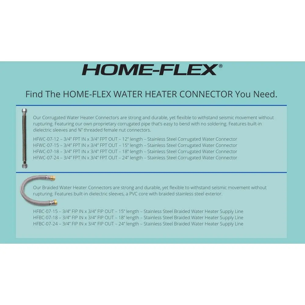 The HOME-FLEX 3/4 in. MIP x 3/4 in. FIP x 24 in. L Copper Corrugated Water Connector is designed for both residential and commercial water heater installations. With its flexible, corrosion-resistant construction and attached end fittings with built-in dielectric collars, this connector offers an ideal solution for homeowners and contractors.