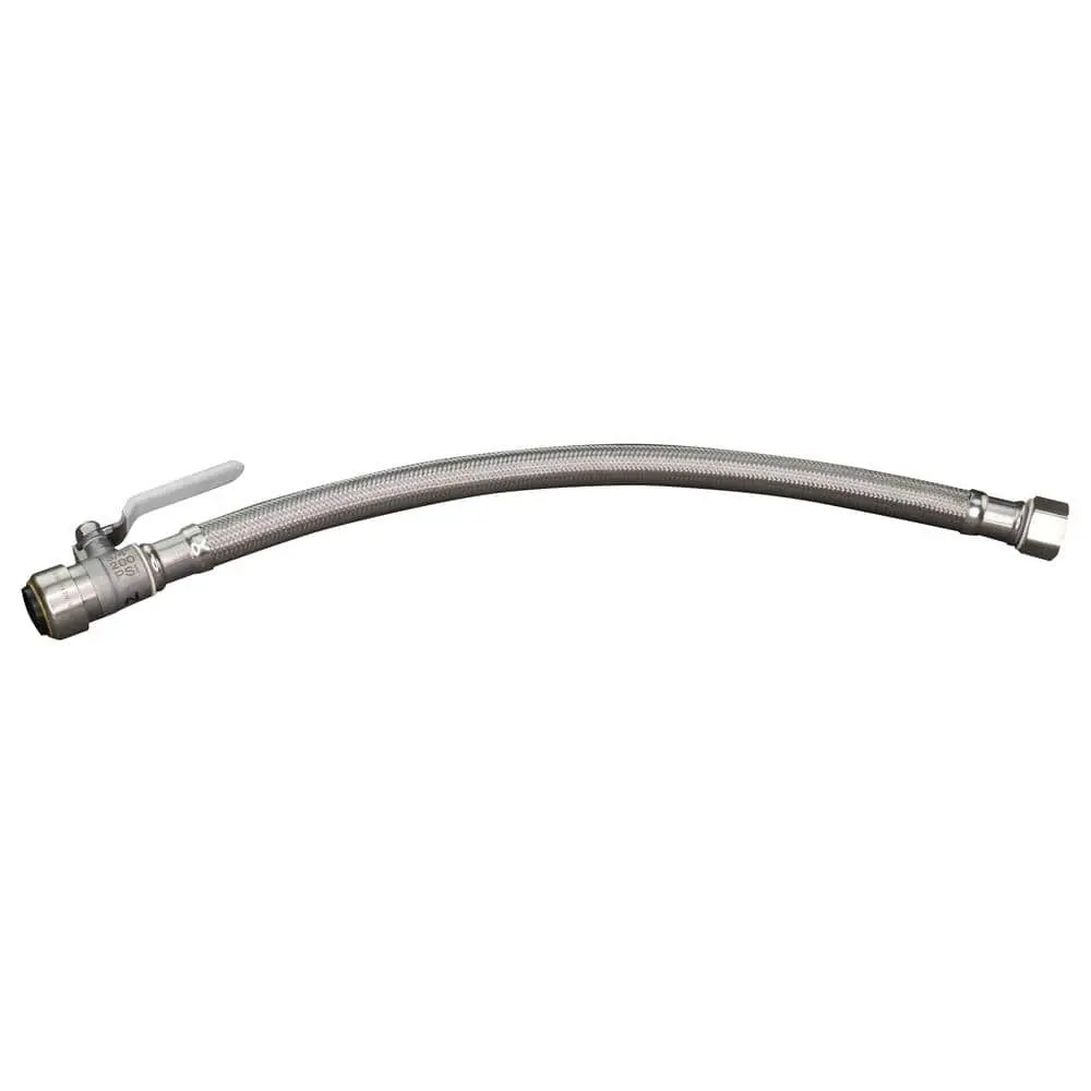 The Everbilt 3/4 in. PTC x 3/4 in. FIP x 18 in. Braided Stainless Steel Water Heater Connector with Ball Valve offers a quick and easy solution for connecting hot and cold water lines to water heaters. After applying pipe thread tape to the MNPT nipples, simply thread the FNPT end onto the tank and tighten. Then, push the Push-To-Connect end onto Copper, PEX, or CPVC pipes to complete the connection. The integrated ball valve provides a convenient quarter-turn shut-off with a single handle for flow control.