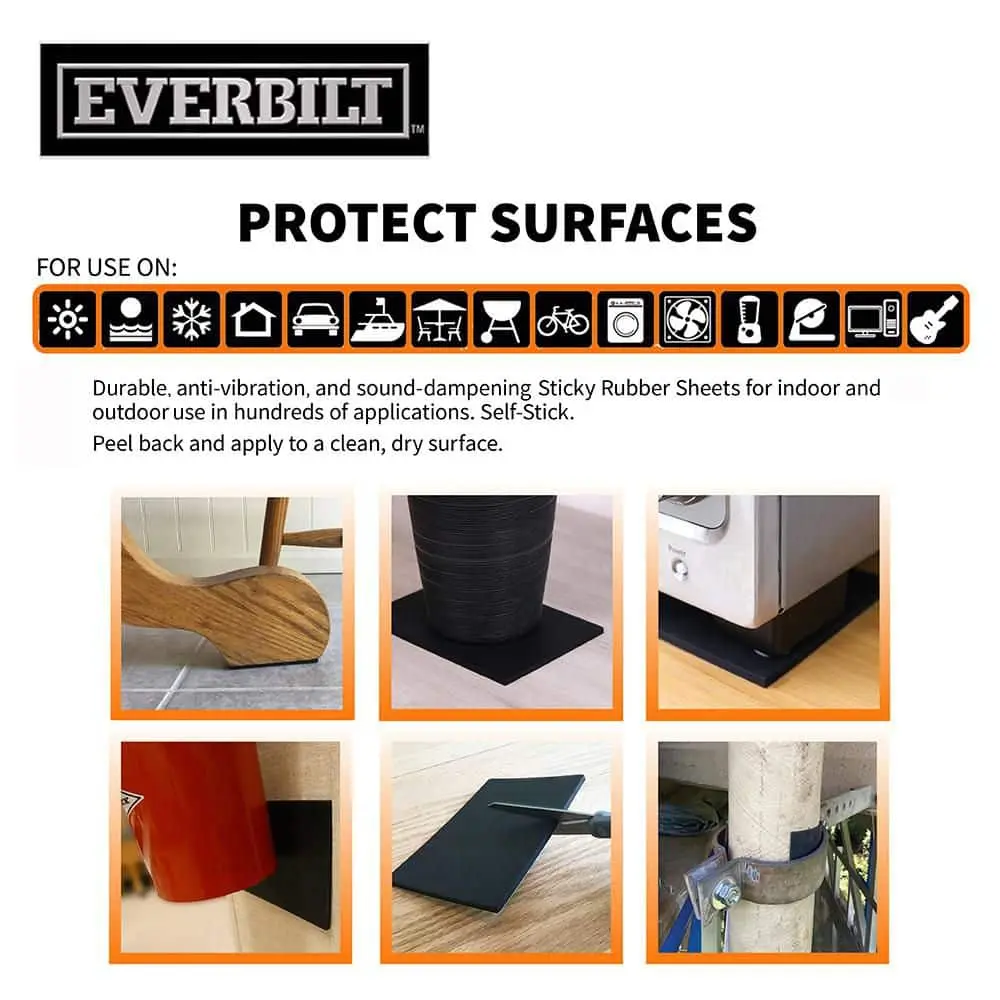 These large rubber sheets are equipped with a strong adhesive, making them perfect for both indoor and outdoor use. They can be easily cut to your desired shape, offering versatile anti-vibration and sound dampening properties. Ideal for a variety of applications, including use beneath patio furniture, power tools, appliances, music equipment, and for home improvement projects. The rubber sheets come in a convenient resealable bag, ensuring you have extra pieces available for future use. Any remaining adhesive can be cleaned off with rubbing alcohol. This pack includes two sheets.