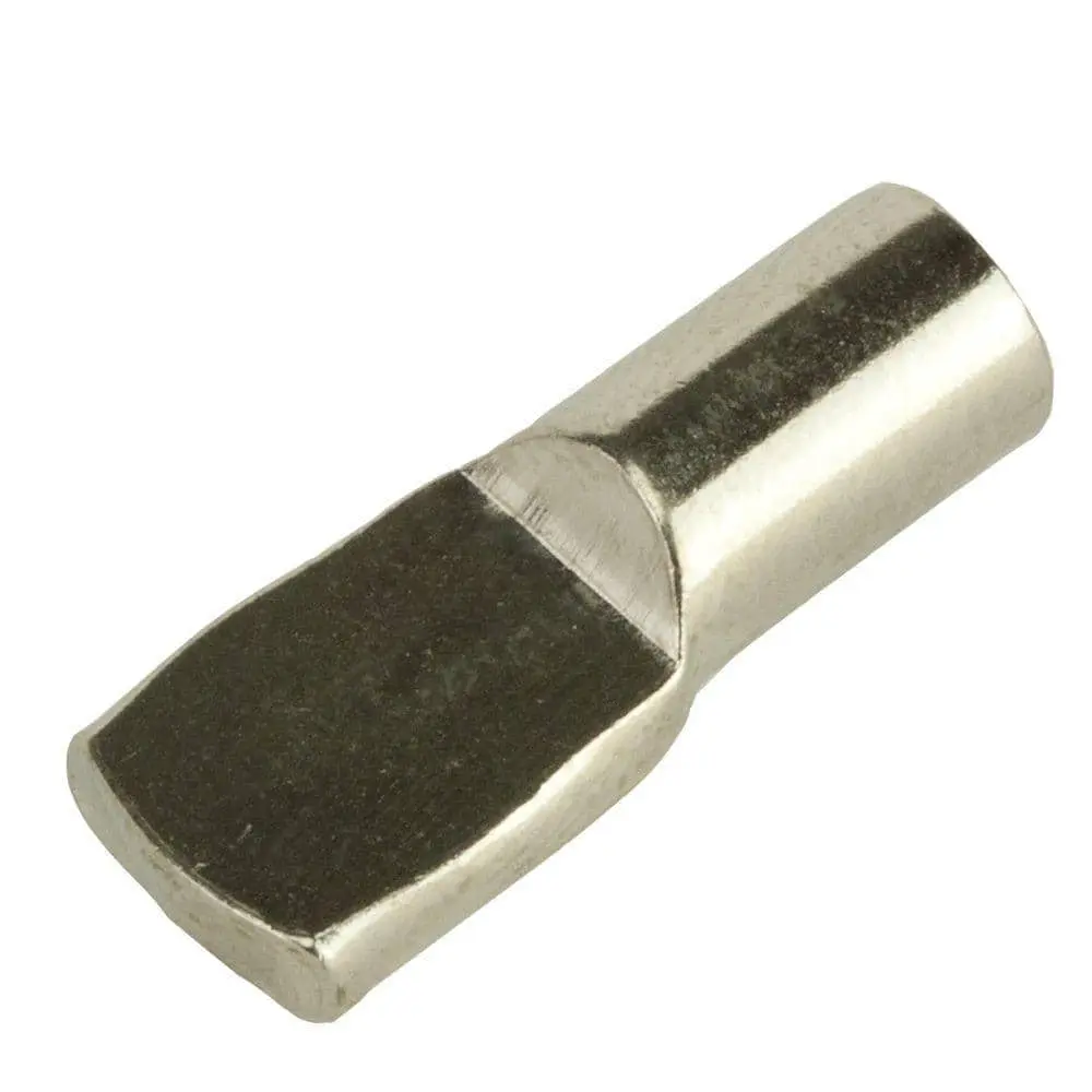 The Everbilt 5 mm Nickel Shelf Support Spoon (12-Pack) is made from durable nickel-plated construction, offering both strength and corrosion resistance. Each pack includes 12 supports, providing ample support for your shelving needs. The spoon-style design ensures secure placement of shelves, and these supports are compatible with most shelves and standard brackets. With a nickel plating, they offer long-lasting use and durability, making installation quick and easy for stable, reliable shelving