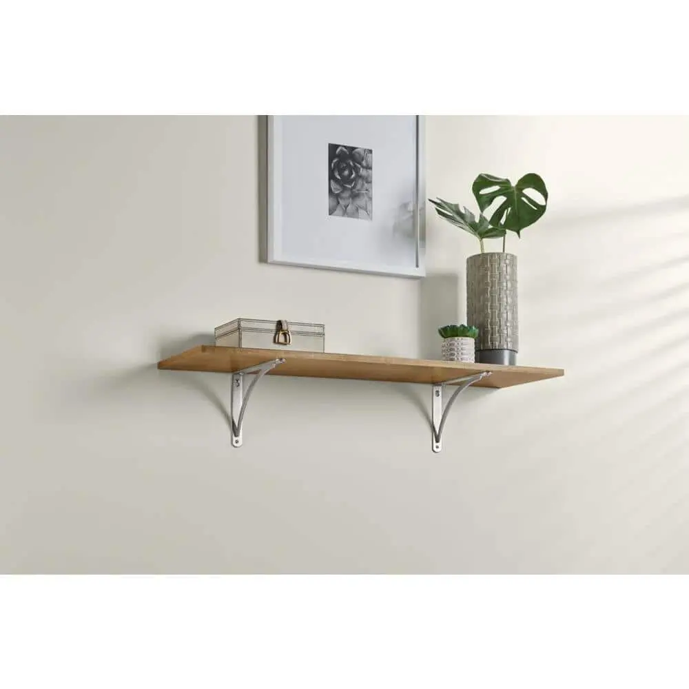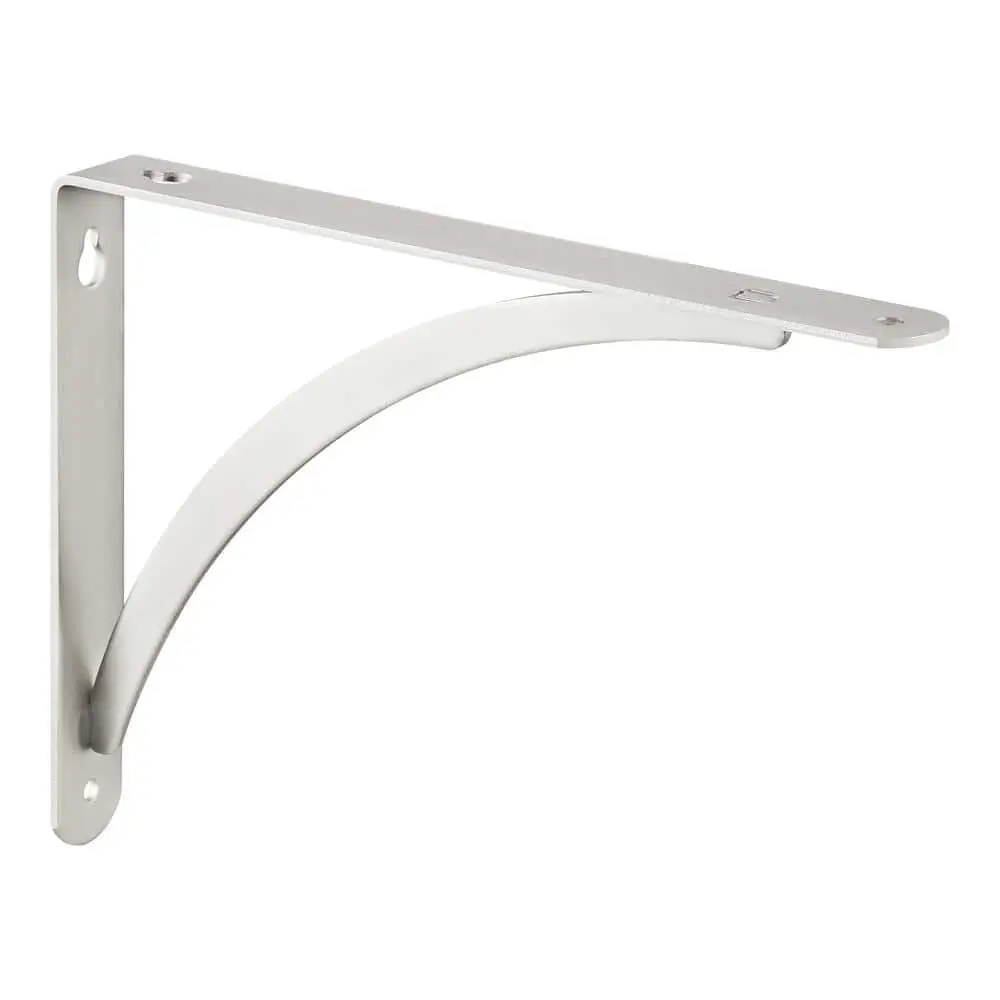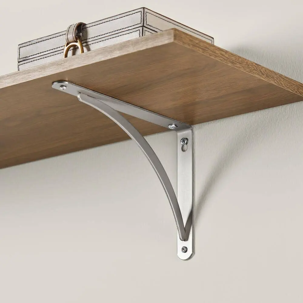 The Everbilt 6.5 in. x 9 in. Plated Satin Nickel Cove Arch Steel Shelf Bracket combines strength and style for reliable shelving support. Made from durable steel construction, it ensures stability and long-lasting use. The plated satin nickel finish adds a sleek, modern touch, making it a great fit for any space. Designed to support shelves up to 9 inches deep, it is perfect for various storage needs. Its decorative cove arch design enhances aesthetics while maintaining durability. With easy installation, this bracket is a versatile choice for closets, garages, or home shelving projects