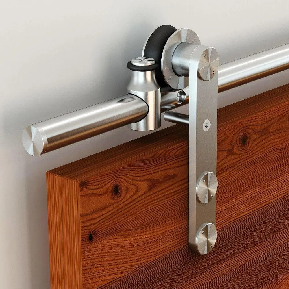 Add a touch of sophistication to your doorway with this Stainless-Steel Sliding Barn Door and Hardware Kit. Perfect for both homes and offices, this barn-style door is great for closets, interior doors, and room dividers. The high-density plastic wheels ensure smooth, quiet operation, while the kit includes all necessary mounting hardware and hanging components for a single door.
