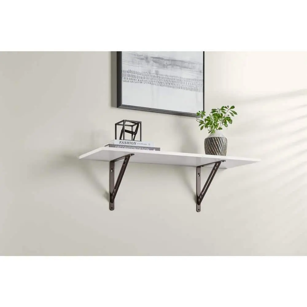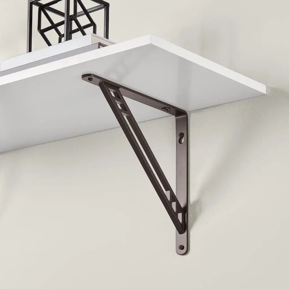 The Everbilt Art Deco Shelf Bracket Bronze 10 in. combines style and functionality with its stylish art deco design, adding a decorative touch to any space. Featuring a bronze finish, it offers both durability and elegance while complementing various décors. Designed to support shelves up to 10 inches deep, this bracket provides a strong and stable storage solution. Its heavy-duty construction ensures long-lasting reliability, making it perfect for a variety of applications. Plus, it is easy to install with pre-drilled mounting holes, making it ideal for living rooms, kitchens, offices, and more