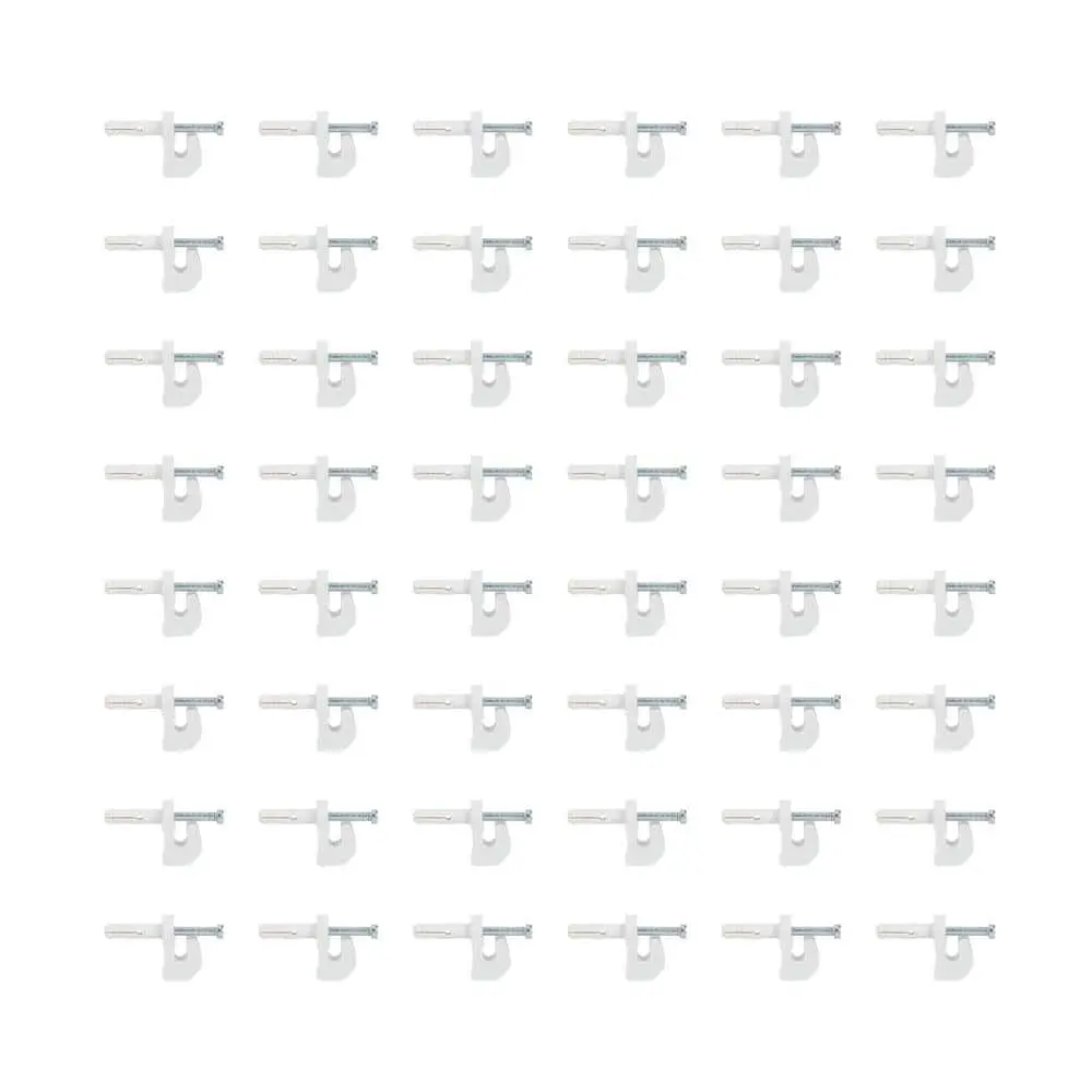 The Everbilt Back Wall Clips - Contractor - Package of 48 are designed for durability and convenience. Made from durable metal construction, these clips provide long-lasting performance for a variety of projects. The pack of 48 ensures you have enough clips for larger installations or multiple uses. With easy installation, they allow for quick and secure attachment of shelves or panels. Their versatile use makes them suitable for various home improvement and storage tasks, while their corrosion-resistant design ensures they remain reliable even in outdoor or wet conditions.
