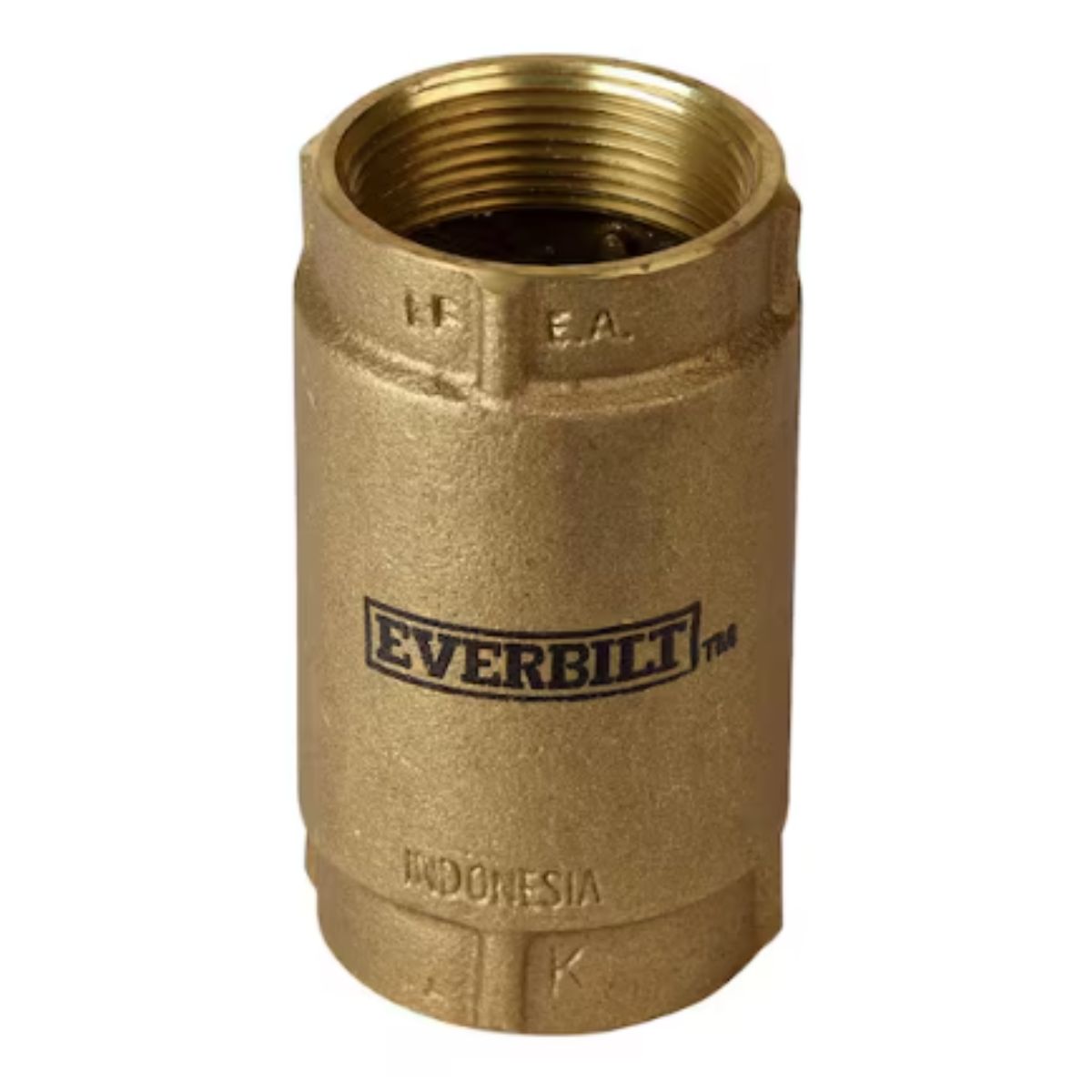 This check valve keeps prime in jet, submersible and centrifugal pump systems. When a pump shuts off, the check valve closes preventing the water from back-flowing. Long lasting, spring-loaded check valves are manufactured with high-quality brass. Features include poppet with Buna-N O-ring, stem guide and wide channel for maximum flow. Rated at 200 psi.