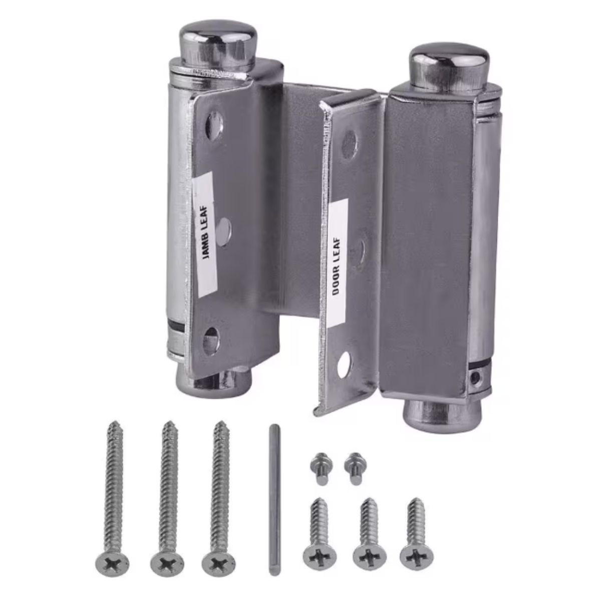 This durable Double-Action Spring Door Hinge swings doors of various thicknesses in both directions. Its oil-rubbed bronze finish adds beauty to any decor. The adjustable hinge returns the door to the center and enables two-way swinging. Made of stainless steel for rust protection.