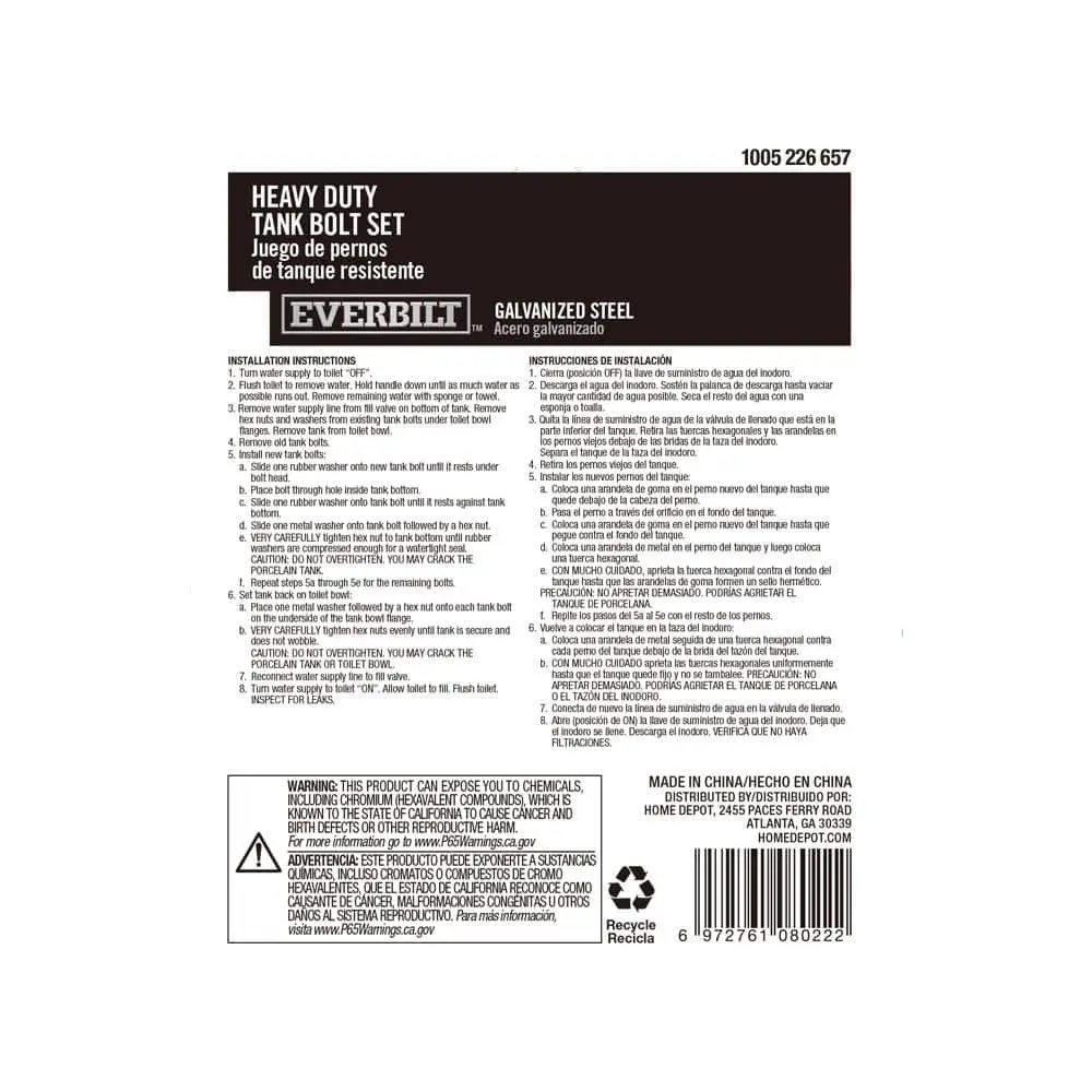 Everbilt Heavy-Duty Toilet Tank Bolt Set Galvanized Steel (1000055116)
