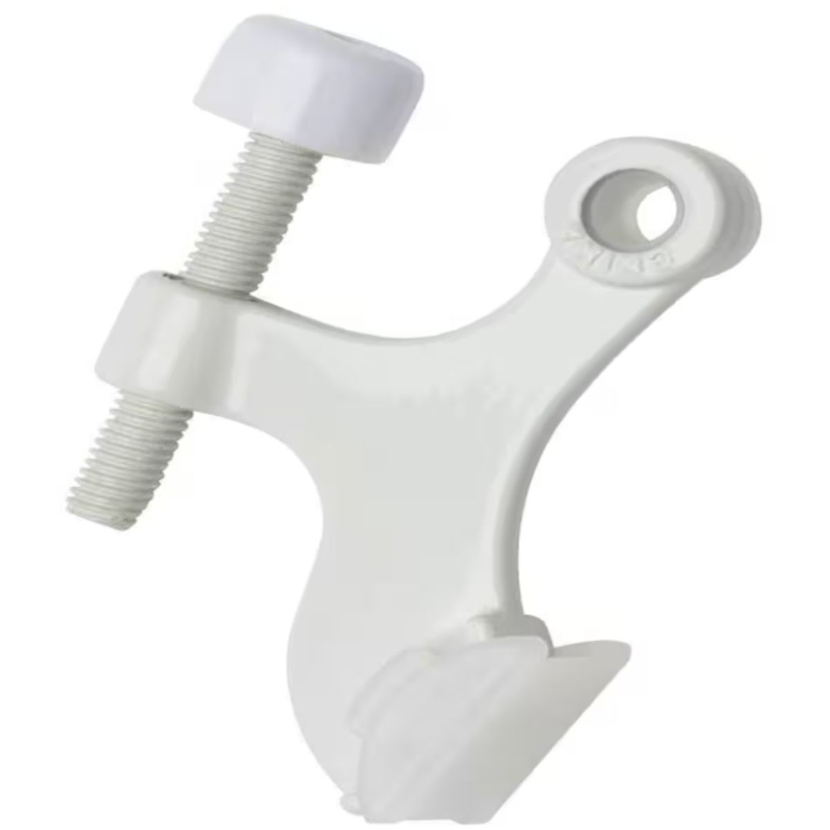 The Everbilt Hinge Pin Door Stop is anchored securely in place using a hinge pin, while its self-adjusting pad ensures complete contact with the door. An oversized bumper, mounted on an adjustable screw, provides protection for the door trim.Compatible with most standard door hinges, this hinge pin door stop features an improved self-adjusting pad to prevent damage to your doors. The white finish adds an elegant touch to your home decor.