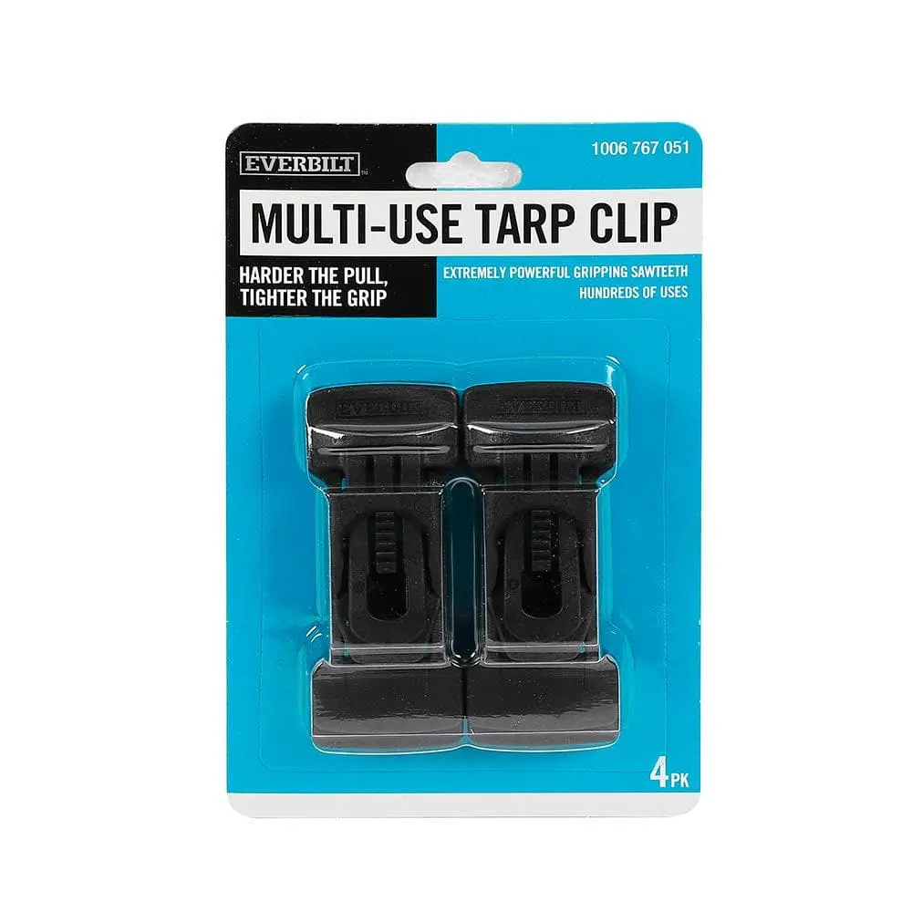 The Everbilt Multi Use Tarp Clip (4-Pack) is designed for versatile use, making it ideal for securing tarps, tents, and covers to various surfaces. Crafted from durable construction, these clips are made from strong, high-quality materials to ensure long-lasting use. They are easy to use, allowing you to quickly attach and secure your tarps without any tools, providing a tight and reliable hold. Built to be weather-resistant, they can withstand harsh outdoor conditions like sun, rain, and wind. With a 4-pack included, you'll have four clips for multiple securing points and better coverage