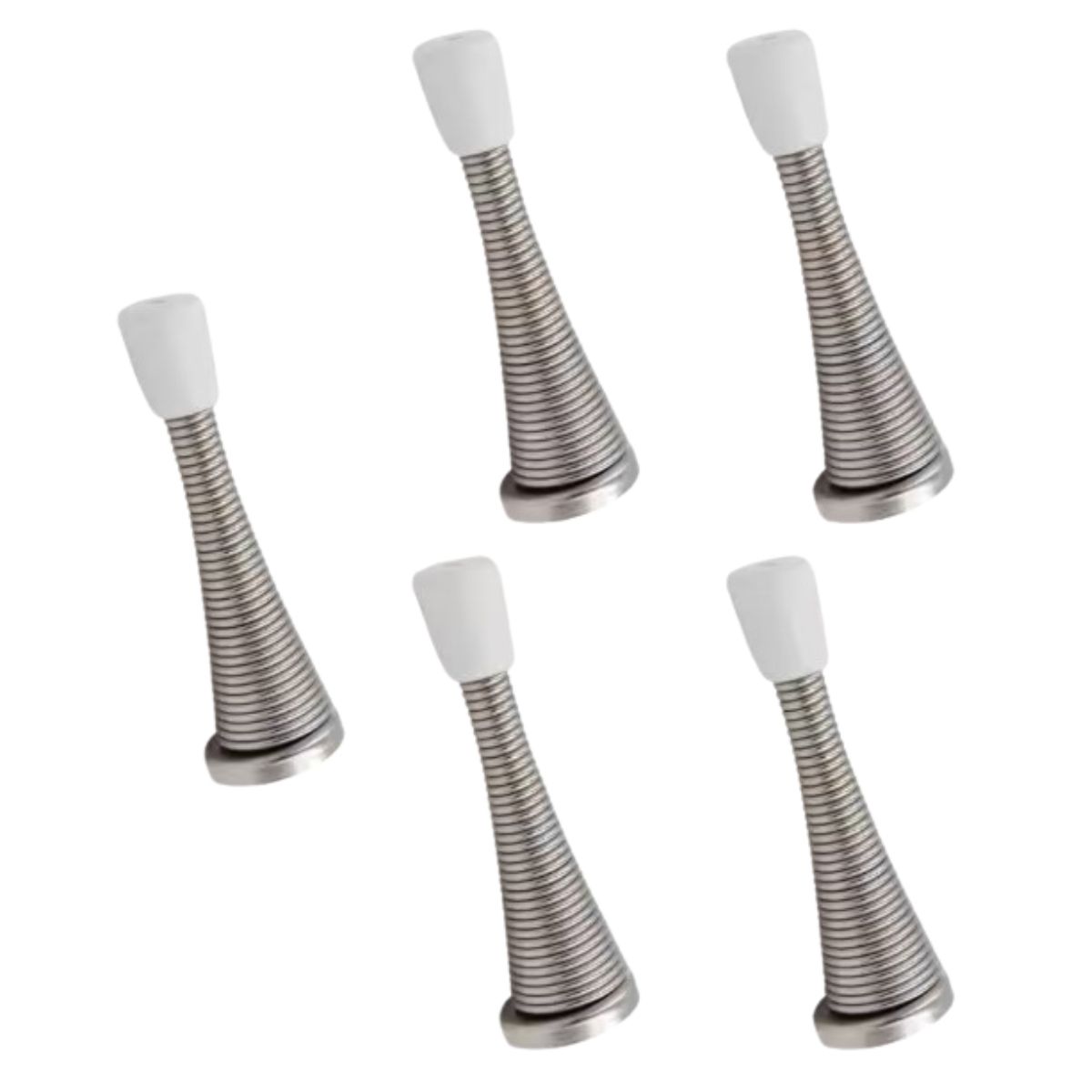 The Everbilt Spring Doorstop (5-Pack) in Satin Nickel protects walls and doors from damage. It's flexible, easy to install, and has a rubber bumper tip for added door protection.Spring door stop design allows flexibility with doorRubber bumper tip protects the door from getting damagedSatin nickel finish adds a beautiful touch to your home decor