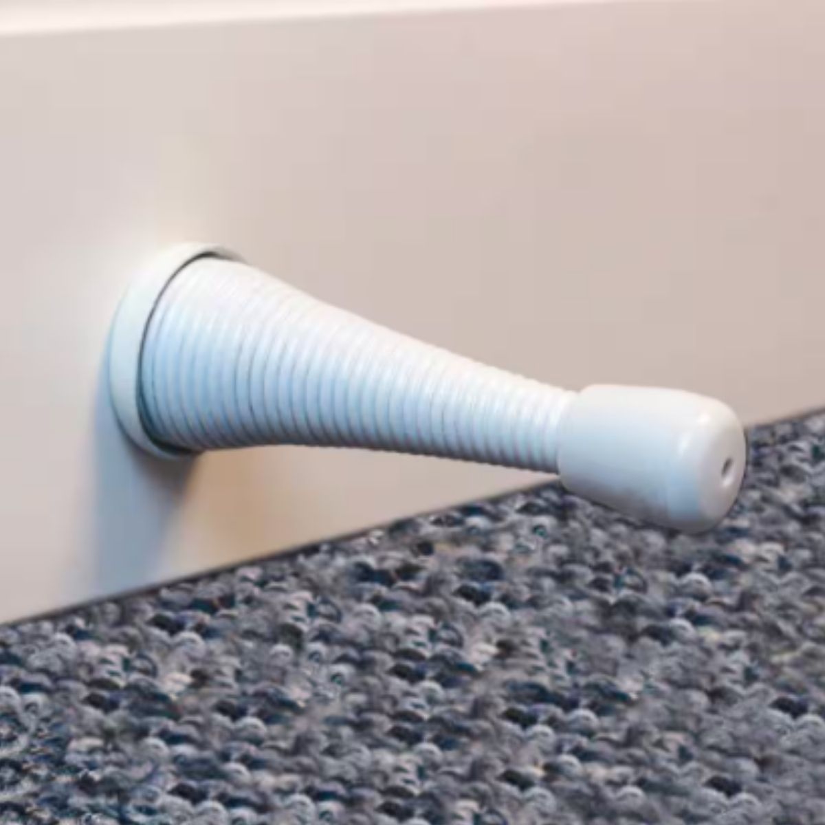 This durable steel spring door stop is designed to prevent wall damage when opening doors. Its flexible design and rubber tip protect the door. The white finish adds a touch of beauty to your home decor. Longer length provides clearance for large items behind the door.