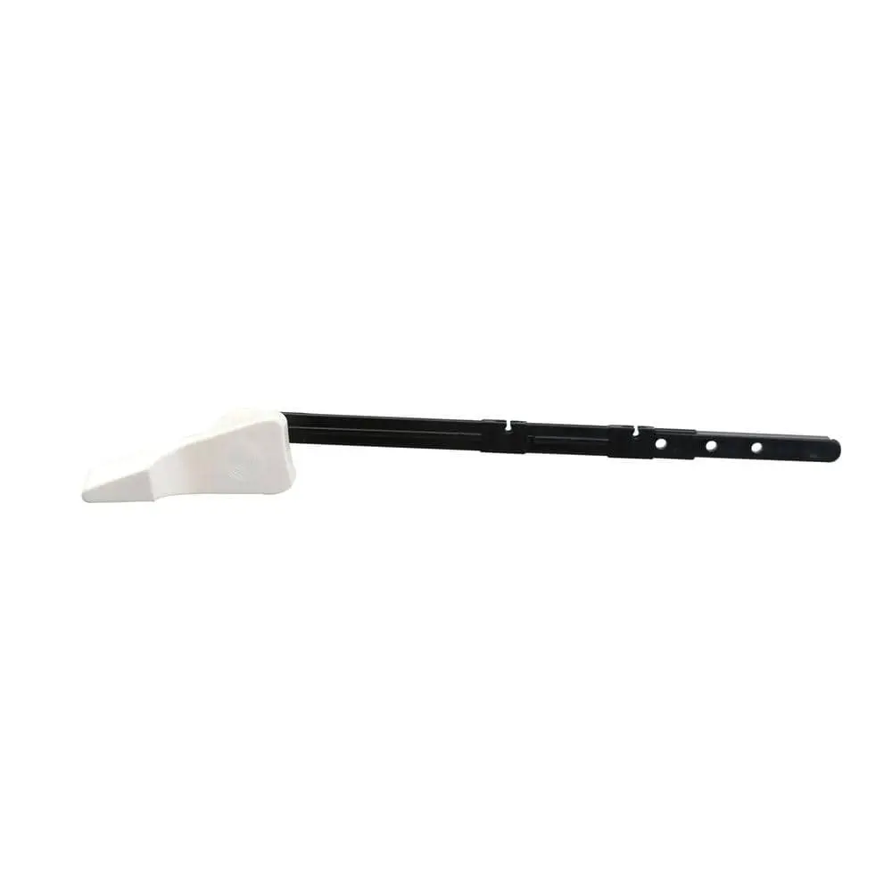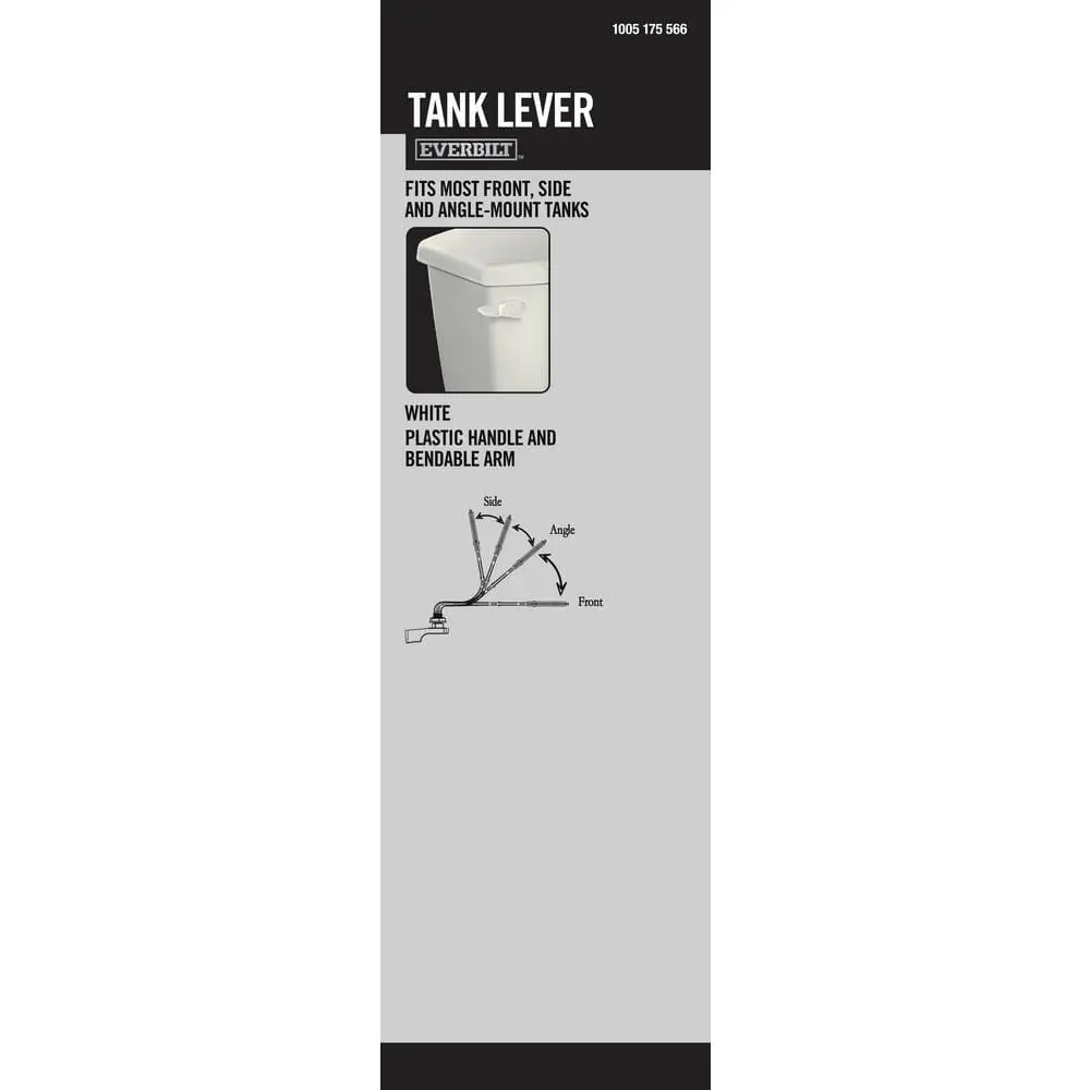 This toilet tank lever is designed to fit most front-mount toilets, offering a simple and stylish way to remodel your bathroom. It’s easy to install and includes a white plastic handle, plastic arm, and white spud and nut.