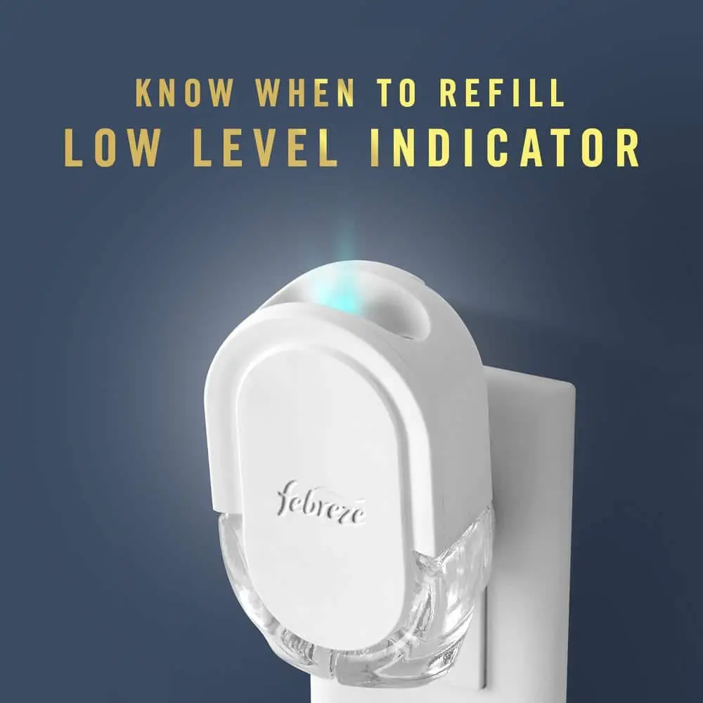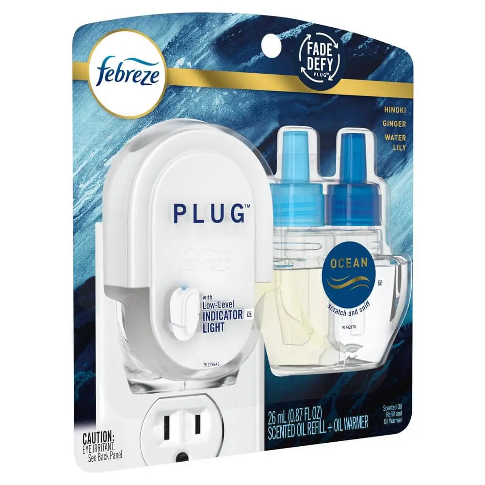Enhance your home's ambiance and eliminate odors with the luxurious fragrance of Febreze Origins PLUG featuring Fade Defy technology. Unlike any other Febreze product, this plug-in releases a fresh, edgy scent for up to 50 days (on the low setting). The captivating blend of waterlily, ginger, and hinoki creates the unique Febreze Ocean scent. With digitally controlled scent release and a low-level indicator light, you can easily manage the fragrance intensity and know when it's time for a refill. Perfect for any room, from your living room to office spaces or foyer, simply plug it in and enjoy a fresh, inviting atmosphere.