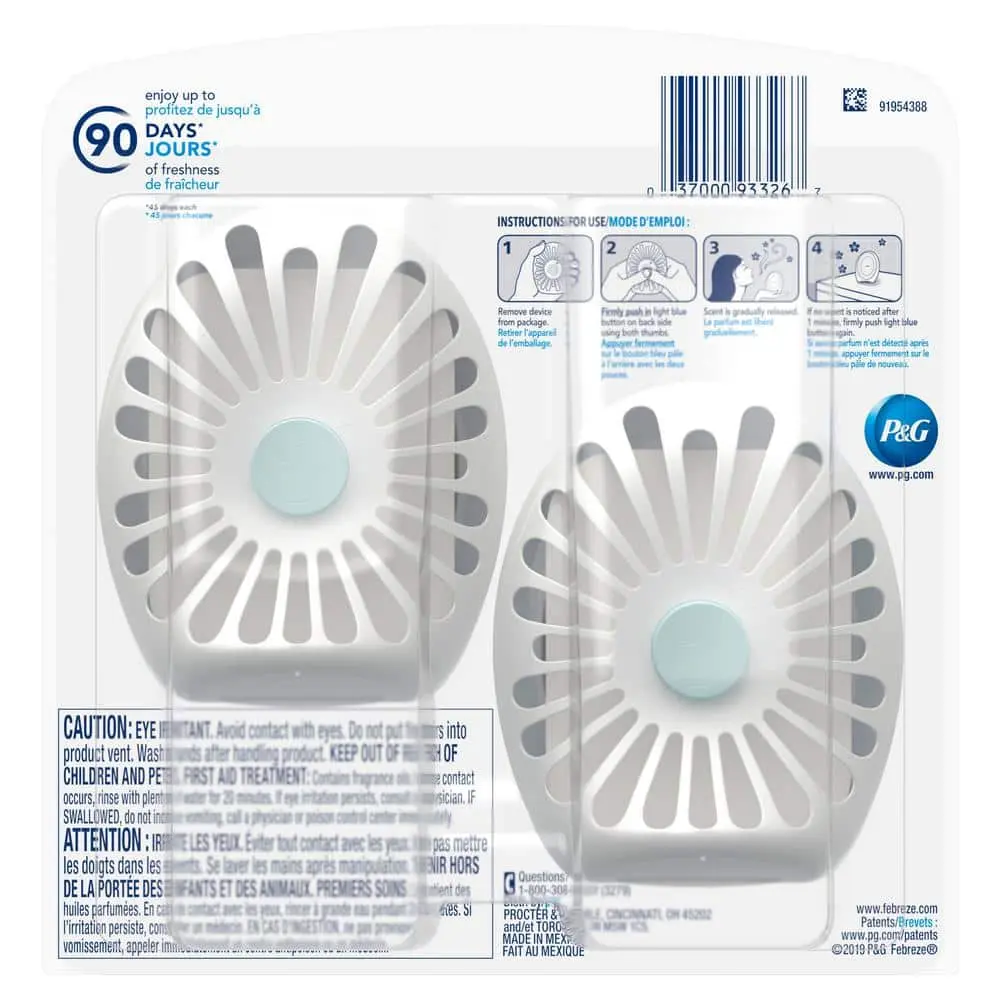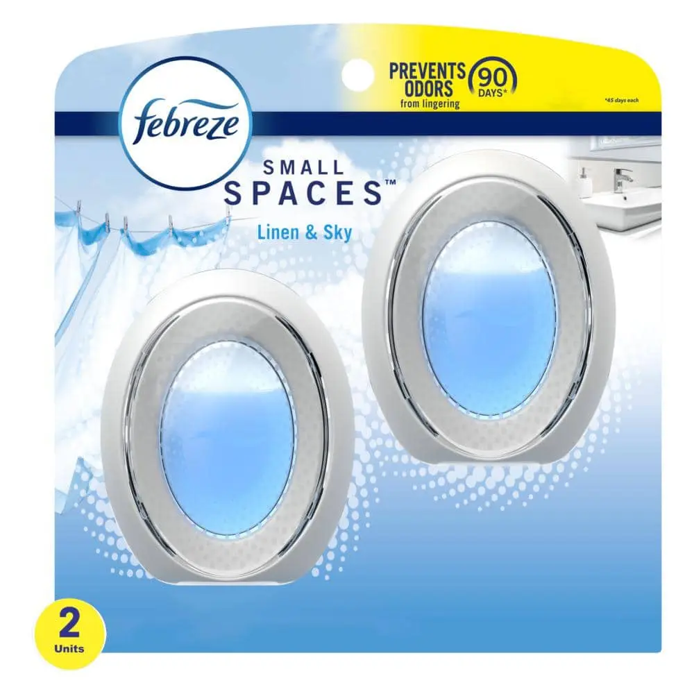 Tired of dealing with odors in tight spaces? Febreze Small Spaces air fresheners have you covered with up to 45 days of long-lasting freshness. They're the perfect solution for those little spots you often forget need a refresh, like bathrooms, closets, and the corner by your cat’s litter box. Just press to activate, then place it wherever you need continuous freshness. It will battle those small-room smells for 45 days. With notes of pear and lily, the fresh Linen & Sky scent will leave you feeling like you're floating in a cloud of cleanliness. Want to keep the freshness going? Try other scents and spread the freshness throughout your home!