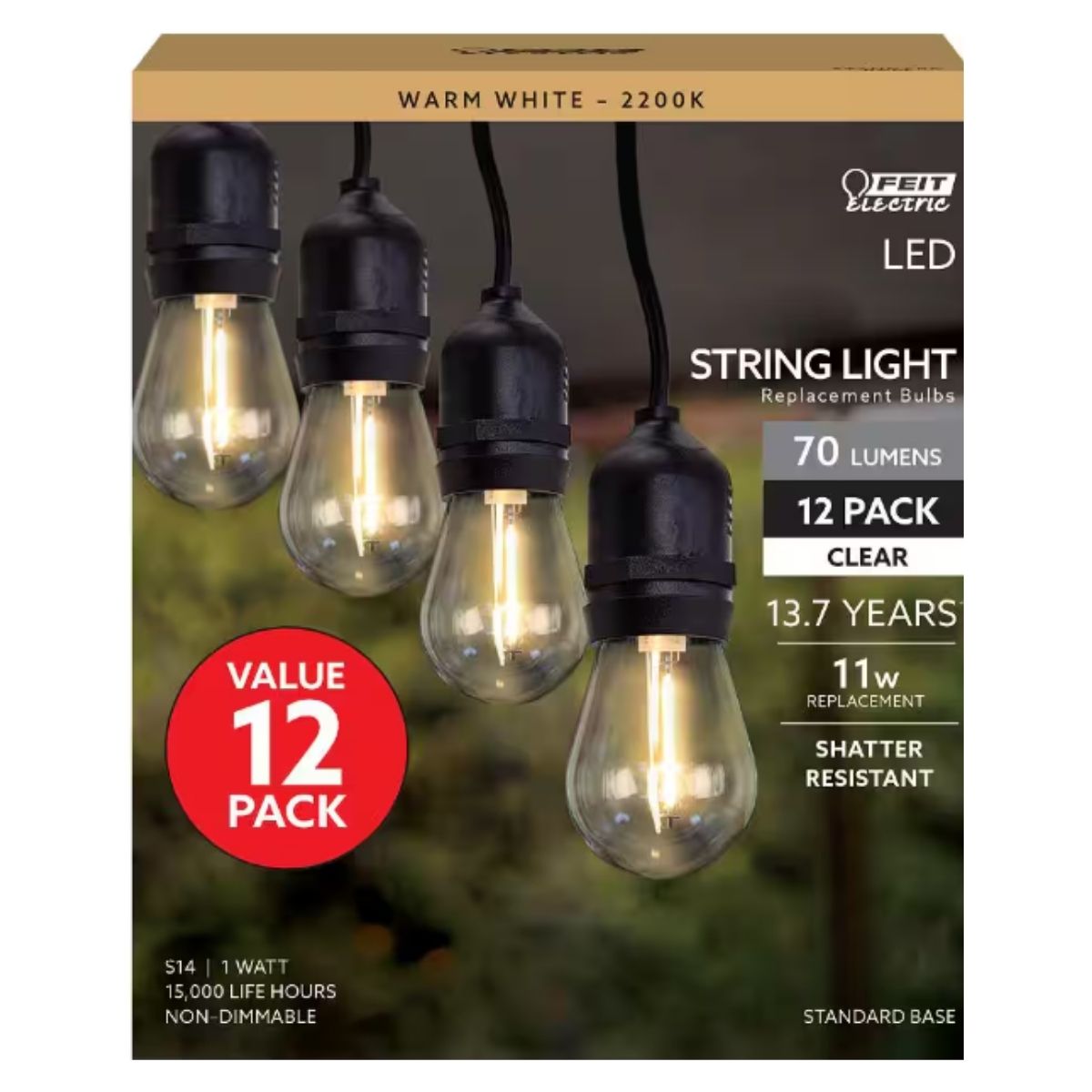 The Feit Electric S14/822/FILED/12 Exposed Filament Light Bulbs offer a perfect blend of timeless elegance and contemporary dependability, all while ensuring energy efficiency. These LED Bulbs feature an exposed filament design, encased in a sturdy transparent housing, providing a fresh take on a traditional aesthetic.