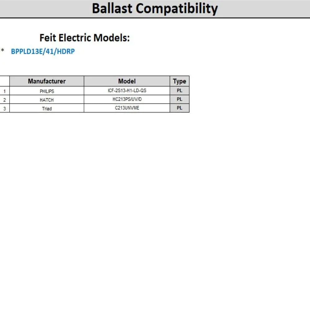 The Feit Electric BPPLD13E/41/HDRP 13-watt Cool White (4100K) PL G24Q-1 Fluorescent Light Bulb offers a compact solution for replacing fluorescent lighting in wall sconces, accent lights, and other decorative fixtures. This non-dimmable CFL uses just 13 watts and provides a brightness of 850 lumens. It has an impressive average lifespan of 10,000 hours (9.1 years, based on 3 hours of daily use). Featuring flicker-free, instant-on illumination and cool operating performance, this CFL is an ideal choice for both residential and commercial applications.