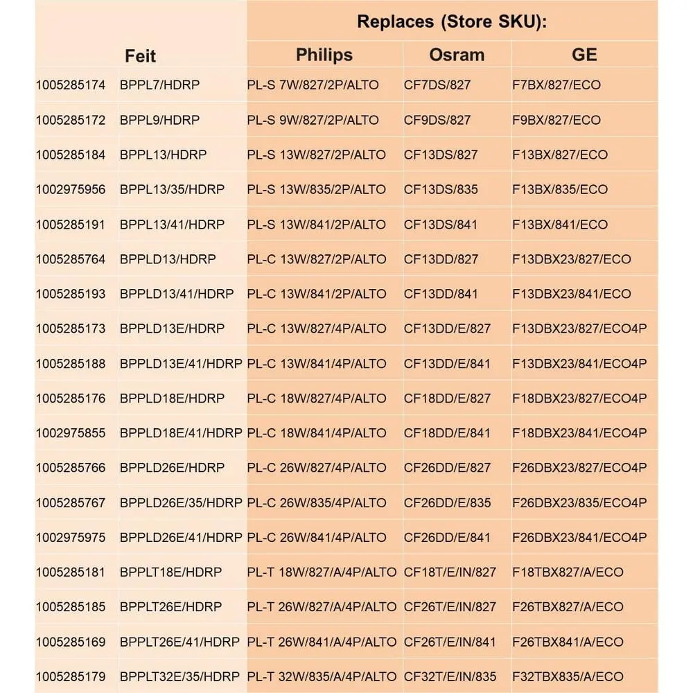 The Feit Electric BPPLT26E/41/HDRP 26-Watt GX24q-3 Base CFL Light Bulb is a PL-shaped compact fluorescent bulb designed for general-purpose and task lighting. Using only 26 watts of electricity, it delivers 1600 lumens of Cool White (4100K) light, making it an excellent choice for living rooms, offices, and other workspaces. This energy-efficient CFL bulb lasts up to 10,000 hours (approximately 9.1 years with 3 hours of daily use) and has an estimated annual energy cost of just $3.13. Ideal for both residential and commercial applications, this bulb offers a reliable and affordable lighting solution.