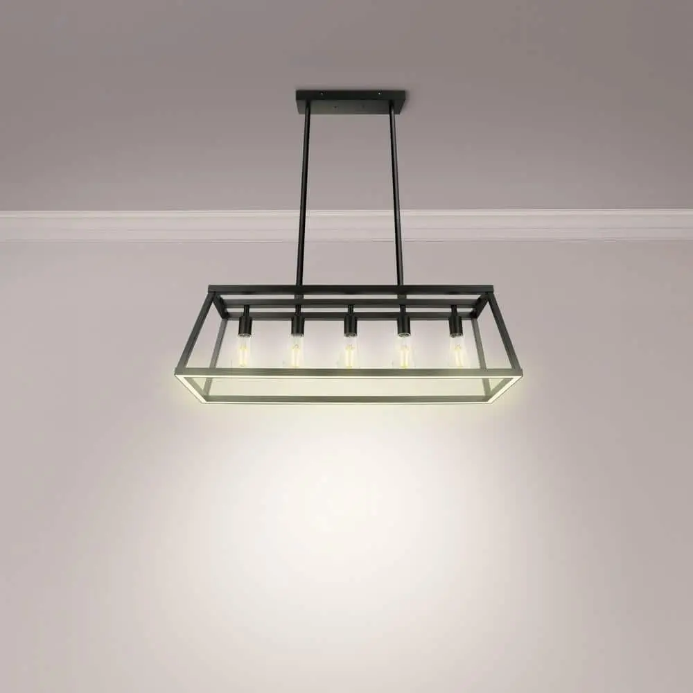 The Feit Electric Katalyst 5-Light LED Chandelier offers versatile lighting with three adjustable modes, making it ideal for multi-use rooms. Combining traditional design with modern energy-efficient LED technology, it features a sleek matte black finish that complements both contemporary and traditional decor styles. The fixture allows you to easily switch between lighting modes: Entertain mode with 4000 lumens, Work mode combining area light and downlight for 4800 lumens, and Relax mode with a soothing 40-lumen night up-light at 2200K. The downlight color can be adjusted between Soft White, Bright White, Neutral White, Cool White, and Daylight to suit your needs. You can also customize the lighting by dimming the area light and downlight using an existing dimmer. With the ability to add your own E26 base bulbs, the Katalyst Chandelier is the perfect lighting solution for work, play, and relaxation.