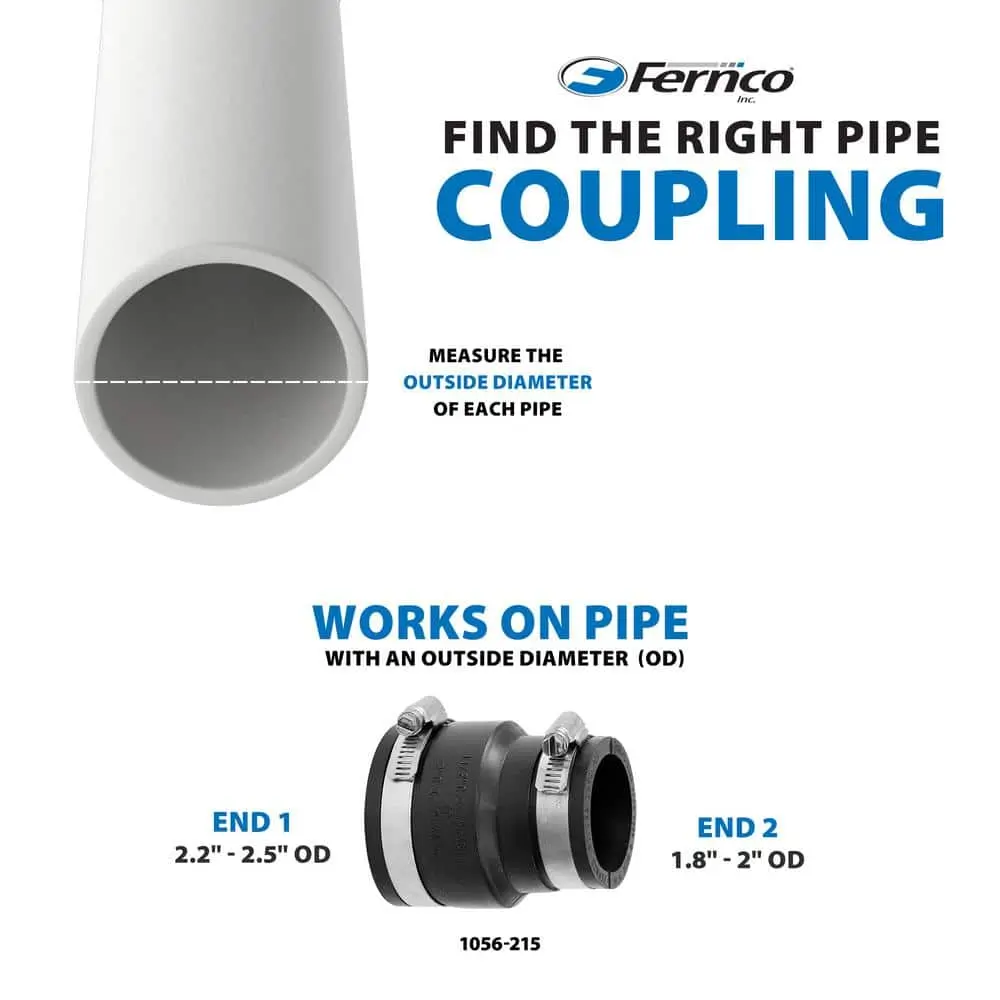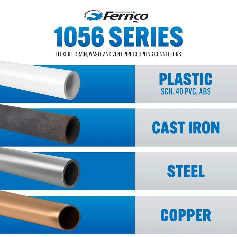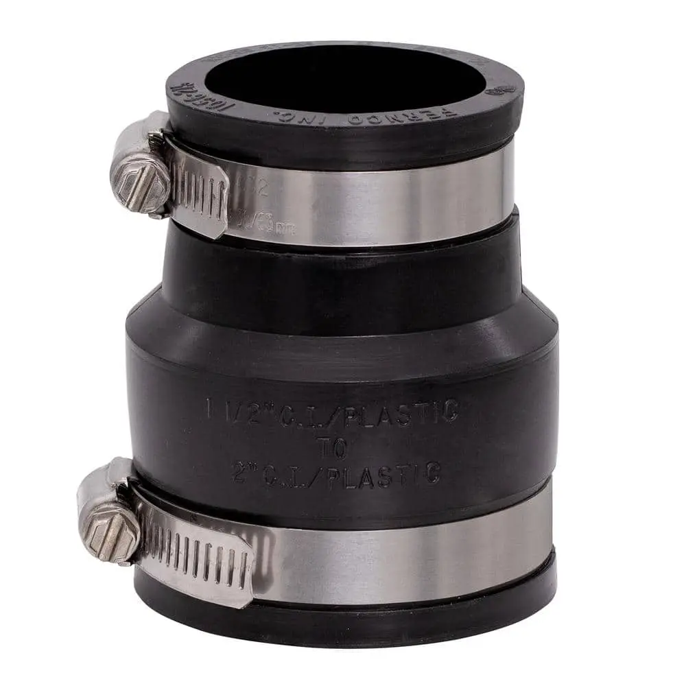 Fernco Couplings are renowned for their reliable, consistent performance, ensuring you can trust in their quality and durability. Their dimensional flexibility guarantees leak-proof seals across a wide range of pipe materials. Each coupling is clearly marked with part numbers, size, and compatible pipe materials for easy identification.