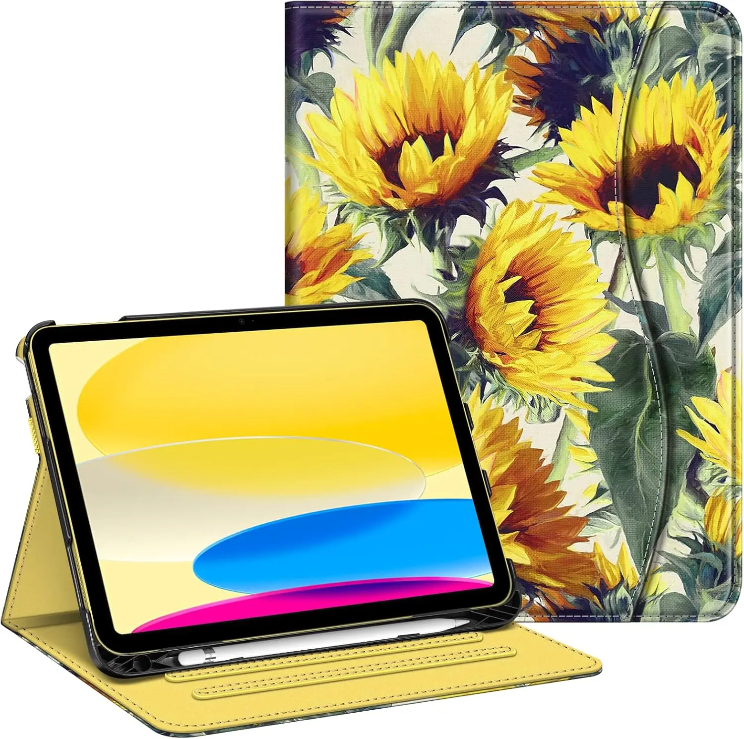 Fintie Case for iPad 10th Generation 10.9 Inch (2022), Multi-Angle Viewing Protective Stand Cover with Pencil Holder & Pocket, Auto Sleep/Wake (sunflowers)