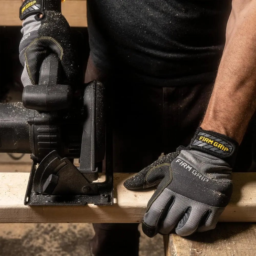 Firm Grip General Purpose work gloves are designed for high performance and comfort, making them the ideal choice for a wide range of tasks. Reinforced for protection, these gloves provide a snug fit for all-day use. The durable synthetic leather and grip-enhanced palm ensure a secure, confident hold, whether you're using large power tools or handling small, precise parts. Stretch panels between the fingers offer breathability, while padded knuckles provide added protection.