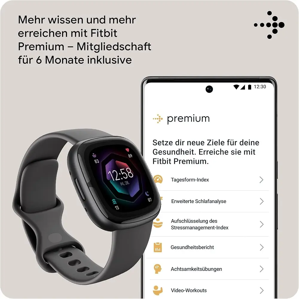 • Stress Management: All-day stress detection with cEDA (continuous electrodermal activity) and a daily Stress Management Score to help monitor and reduce stress levels.