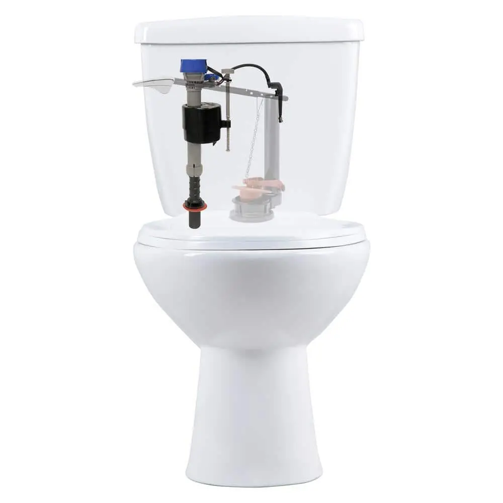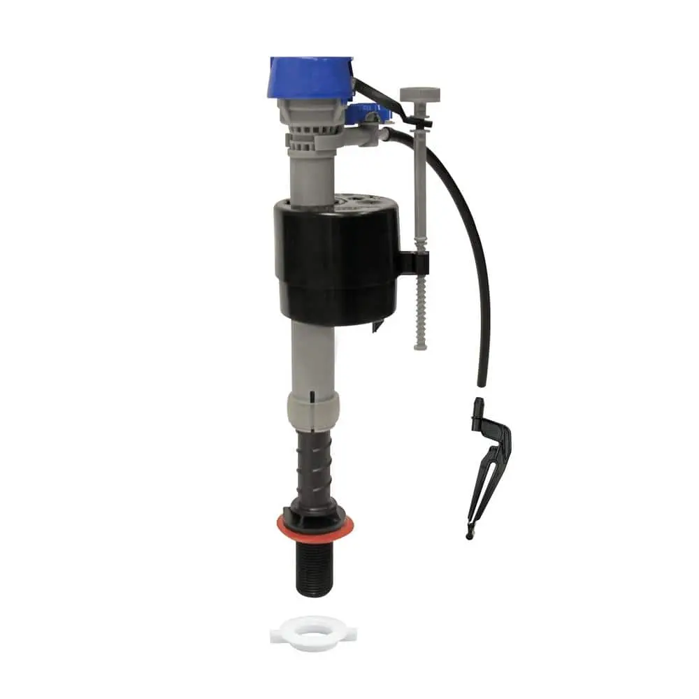 The Fluidmaster 400H-002 PerforMAX High Performance Universal Toilet Fill Valve is the ultimate solution for replacing your toilet's fill valve. This advanced valve delivers top-tier performance, featuring new upgrades for even greater water savings and a quicker installation process. Known as the most powerful fill valve on the market, it offers double the refill rate of standard models while ensuring ultra-quiet operation. Its universal design fits most toilet brands, and the easy-to-follow installation instructions make repairs simple. The fill valve features adjustable shank height from 9 in. to 14 in., making it compatible with a wide range of tanks. It is designed for use with 1.28 HET and 1.6 GPF toilets but can also be used with older 3.5 GPF toilets (pre-1994). With water-saving features like adjustable tank and bowl water level dials, this valve ensures efficient water use per flush based on your needs or toilet model. Plus, the anti-siphon design prevents contamination of the fresh water supply. The package includes everything you need for a fast replacement: fill valve, washer, locknut, tube, and clip.
