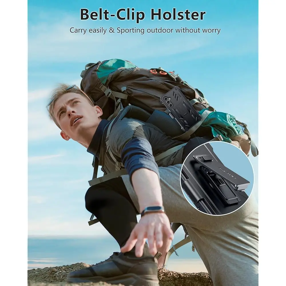 Equipped with a built-in kickstand, this case allows for convenient hands-free viewing, whether you're watching videos or attending virtual meetings. The included holster provides added functionality, keeping your phone secure and accessible on the go. Designed with precision, it ensures full access to all ports, buttons, and features, maintaining the phone's usability while offering reliable protection.