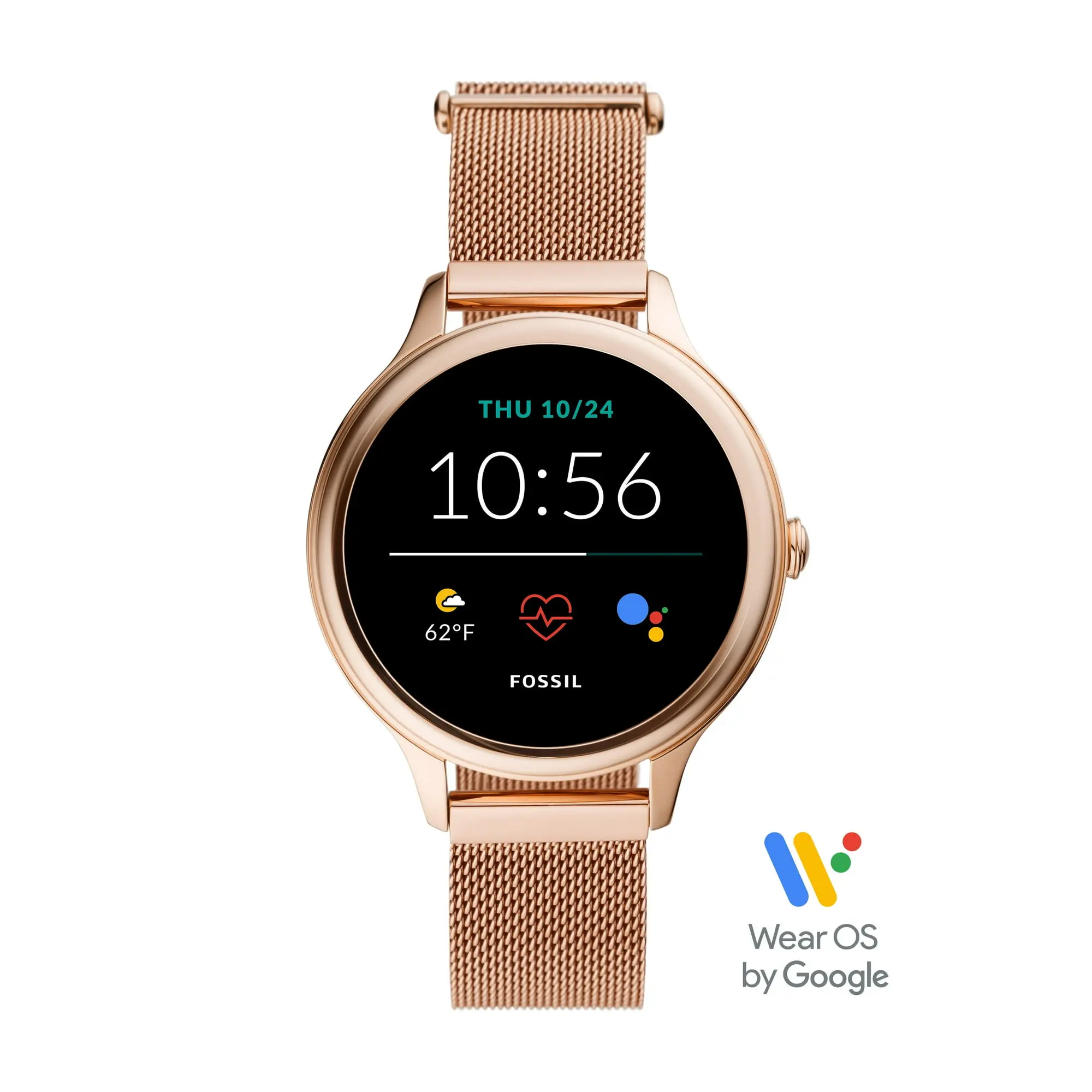 The Fossil Women's Gen 5E 42MM Stainless Steel Mesh Smartwatch (Model: FTW6068) is a versatile and stylish accessory that blends functionality and elegance.