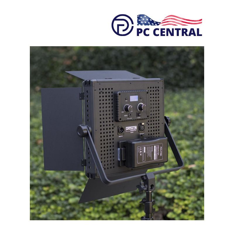 V-mount batteries and charger are available separately. Local and DMX Control Adjusting color temperature and brightness are simple using the intuitive control knobs, the bright LCD display provides precise information for easily repeatable results. The integrated 3-pin XLR DMX in/out ports provide remote control and networking capability.