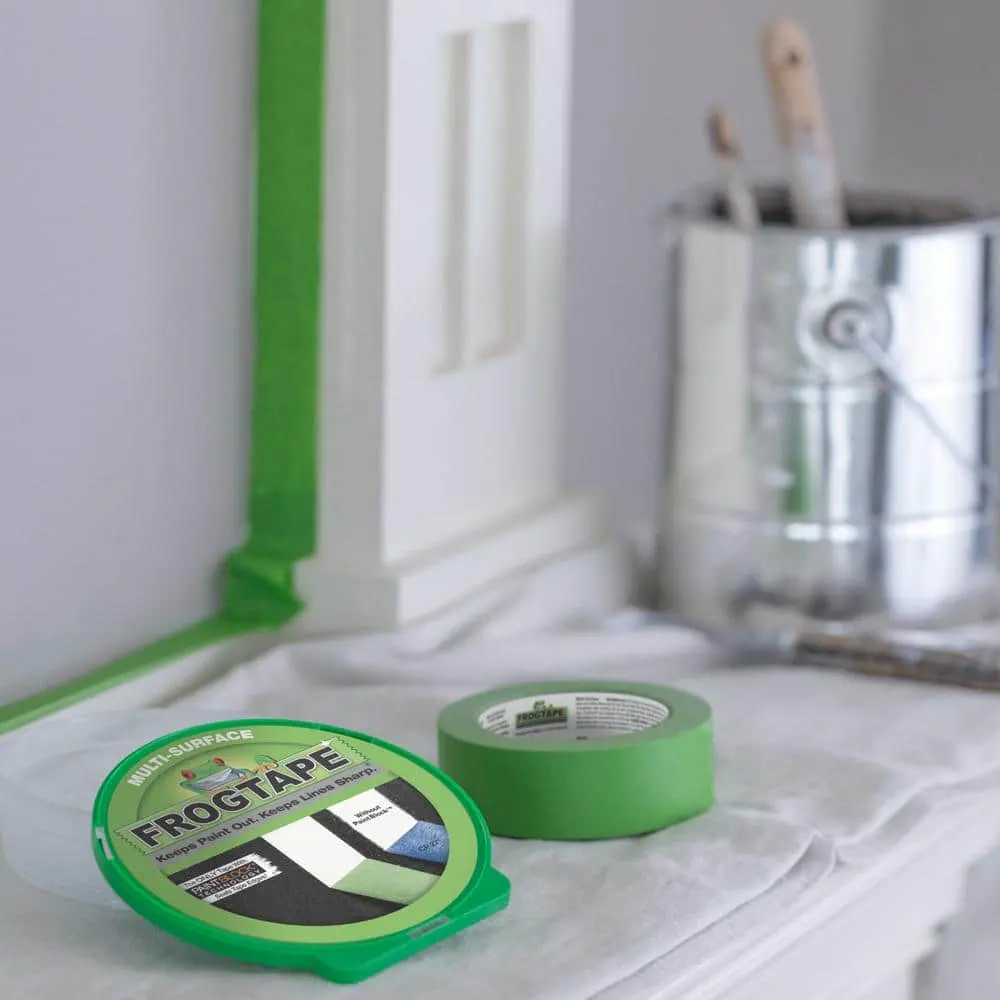 The FrogTape Multi-Surface 1.88 in. x 60 yds. Painter's Tape with PaintBlock features PaintBlock Technology, which prevents paint bleed, ensuring sharp, clean lines. It is designed for multi-surface use, making it safe for walls, trim, glass, and metal. The tape provides strong adhesion for a secure hold, yet it removes easily without leaving residue. With its UV & moisture resistance, it's suitable for both indoor and outdoor projects. The 1.88 in. x 60 yds. size offers ample coverage, making it ideal for various painting and surface protection tasks
