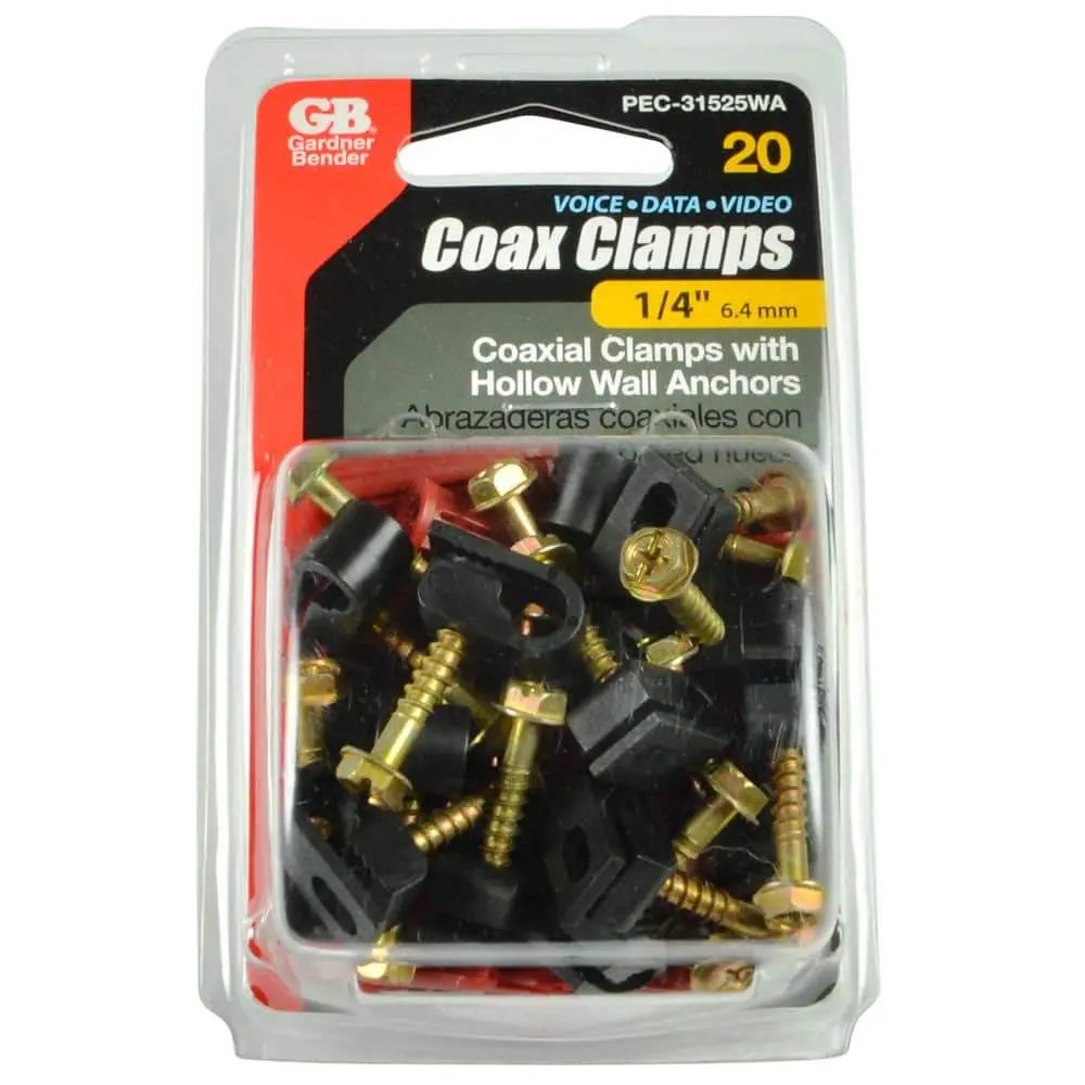 The Gardner Bender 1/4 in. Coaxial Cable Clamp RG-6 (20-Pack) provides an efficient solution for securing coaxial cables. This pack includes 20 clamps, offering plenty for multiple installations. Designed to fit 1/4 in. RG-6 coaxial cables, these clamps ensure a secure and stable hold. Built with durable construction, they offer long-lasting performance, even in tough environments. The clamps are designed for easy installation, allowing for quick and efficient cable management. With a secure hold, they keep cables in place to prevent damage, making them perfect for both residential and commercial installations