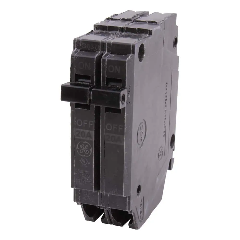 The GE Q-Line 20 Amp Double-Pole Circuit Breaker (1 in.) is built for durability and consistent performance. It features tin-plated copper stabs, ensuring reliable, permanent, and corrosion-resistant connections. A cemented calibration screw prevents shifting, maintaining a stable calibration for optimal operation. The heat-resistant thermoset case provides enhanced stability and structural integrity.