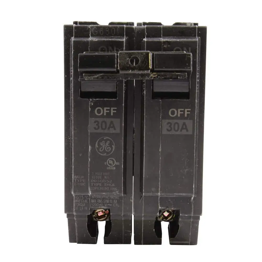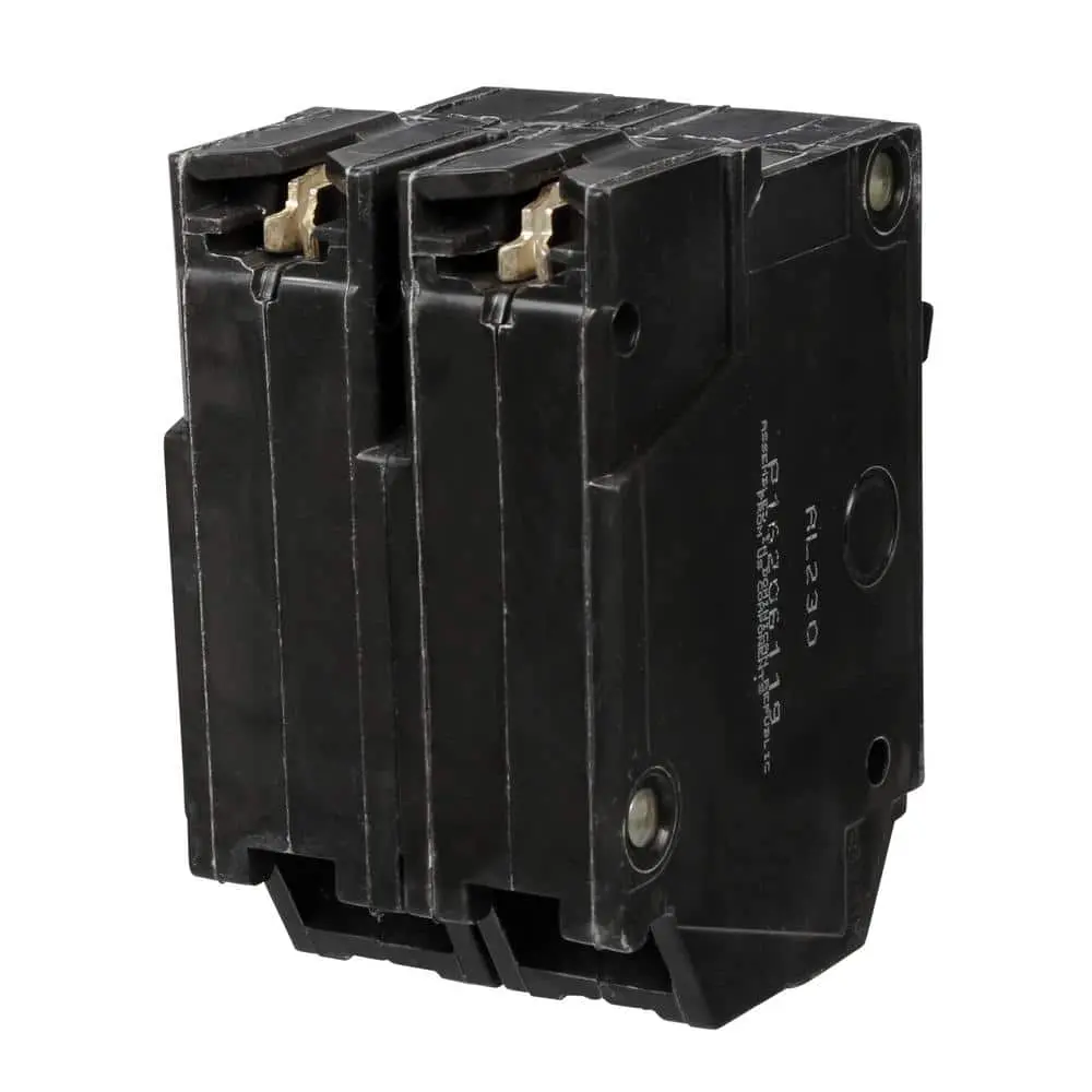 The GE Q-Line 30 Amp 2-Pole Circuit Breaker is designed for reliable performance and durability. It features a dedicated, cemented calibration screw that prevents shifting, ensuring stable calibration for optimal functionality. Tin-plated copper stabs provide durable, corrosion-resistant connections, while the heat-resistant thermoset case enhances stability and structural integrity.