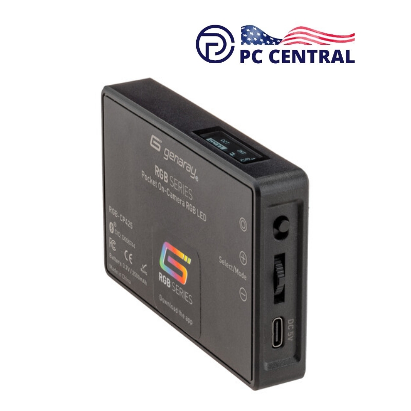 The RGB-CP425 is controlled by a simple and intuitive on-unit interface, with an easy-to-read OLED display screen on top. Bluetooth support pairs with Genaray's RGB Series mobile app, which provides more light control and access to even more powerful features. Use the app to create a universe of RGB-series lights that can be controlled from a smartphone or tablet from up to 33' away.