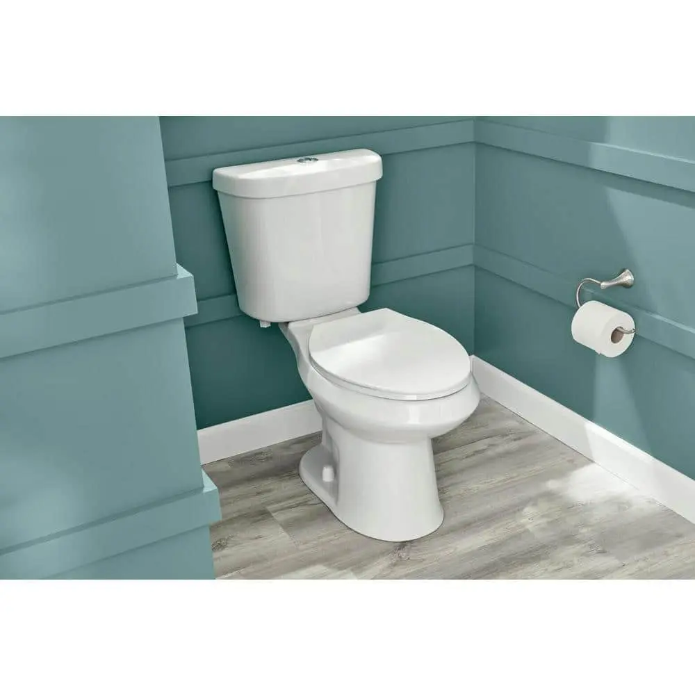 The Glacier Bay 2-Piece High-Efficiency Dual-Flush Elongated Toilet in White provides strong flushing performance with options for 1.1 or 1.6 GPF, while its WaterSense certification promotes water conservation. Made from durable vitreous china, this toilet resists acid, abrasion, and stains. The complete package includes the toilet bowl, tank, seat, wax ring, and floor bolts with caps.