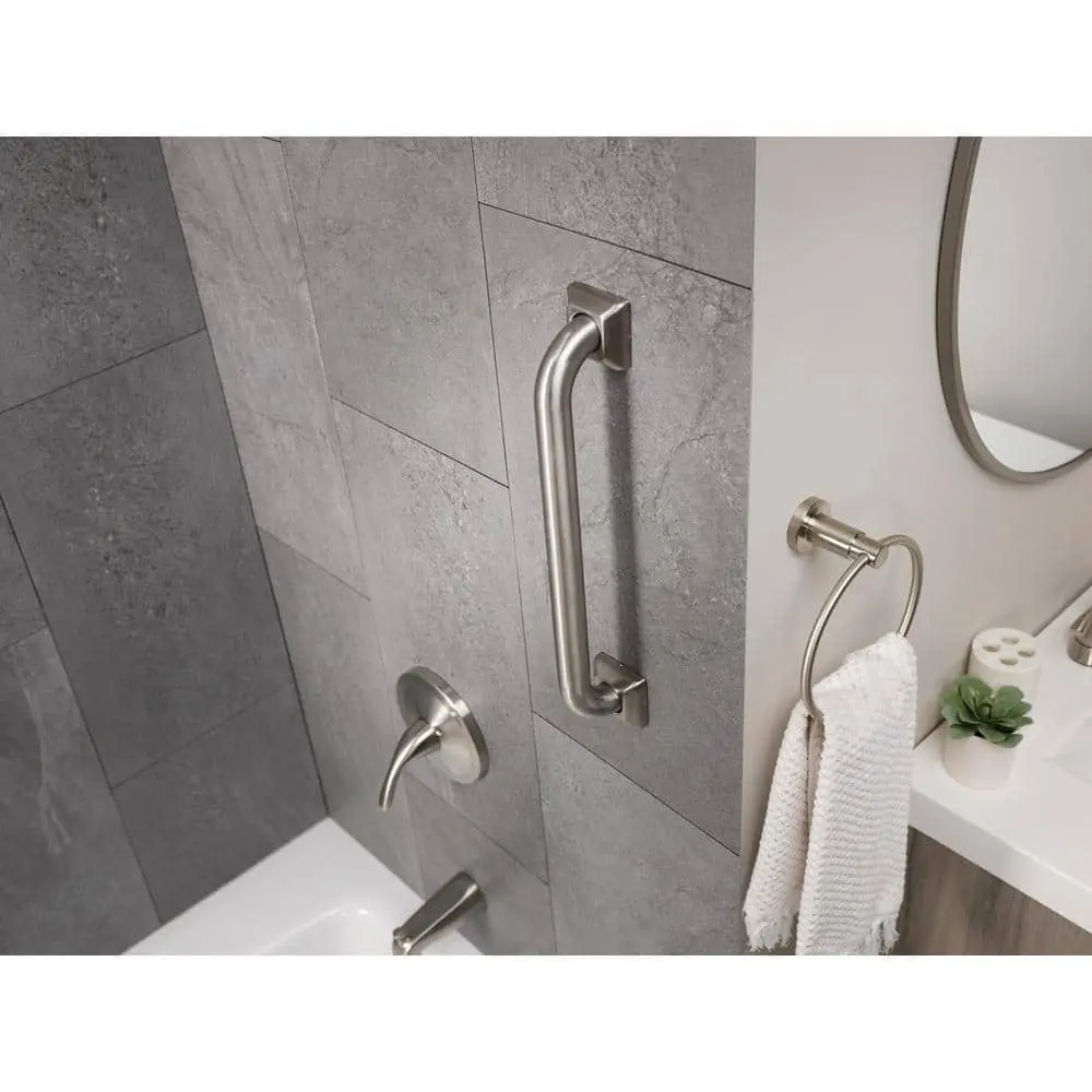 The Glacier Bay 16-Inch Grab Bar in brushed stainless steel combines both elegance and safety, making it an essential addition to your bathroom. Crafted from durable stainless steel, its sleek brushed finish not only enhances aesthetic appeal but also ensures long-lasting performance. Designed for easy installation, it includes concealed screw escutcheons for a seamless look and comes with six stainless steel screws for secure mounting. With a robust support capacity of up to 500 lbs., this grab bar exceeds ADA standards, providing peace of mind and enhancing accessibility in your space. Experience the perfect blend of style and safety with this beautiful, functional grab bar.