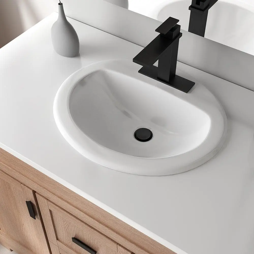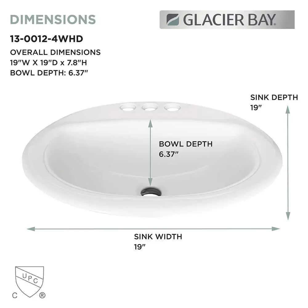 Every detail matters when creating your dream bathroom. The classic design of the Glacier Bay drop-in bathroom sink complements a variety of vanity styles. Featuring an oval basin in a timeless white finish, this sink combines superb utility with lasting durability, making it a practical and elegant choice for any bathroom
