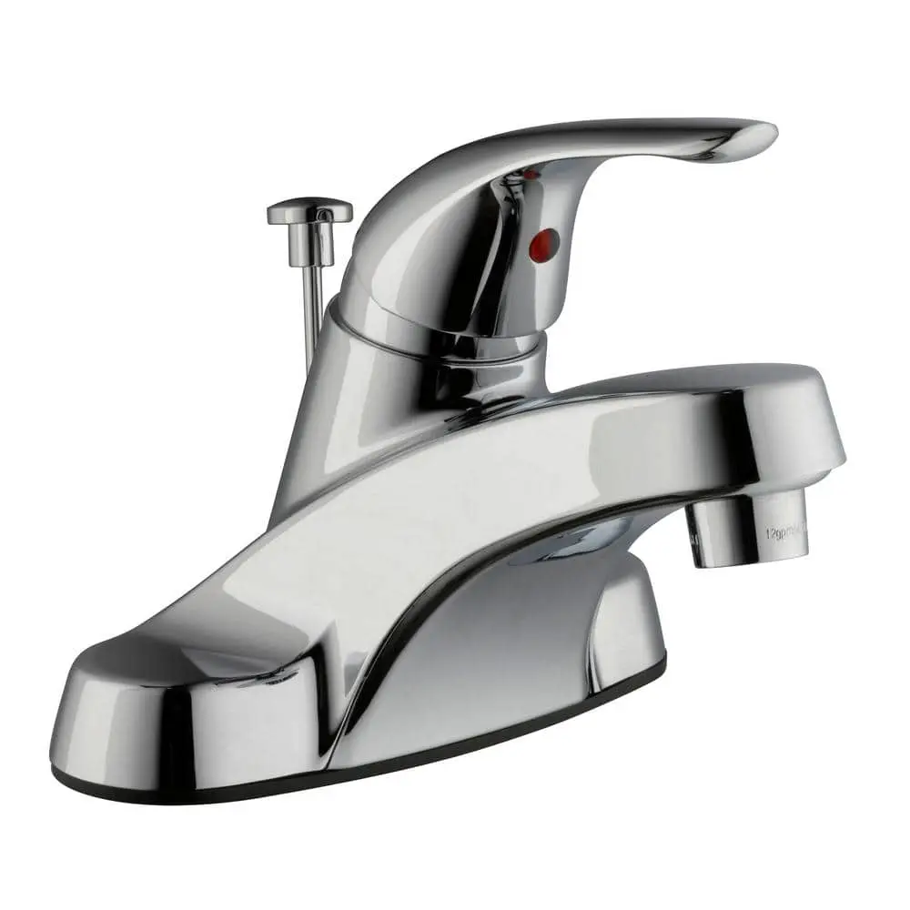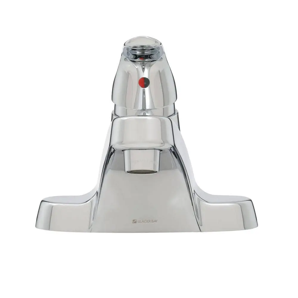 The Glacier Bay Aragon Single Handle Low-Arc Bathroom Faucet in Chrome combines durability with an easy-to-clean finish. It meets WaterSense criteria with a 1.2 GPM flow rate to conserve water without compromising performance. The single lever design allows for effortless operation, and the low-arc spout provides ample space for hand washing. Featuring the Glacier Bay exclusive ClickInstall drain, this faucet ensures quick and simple installation.