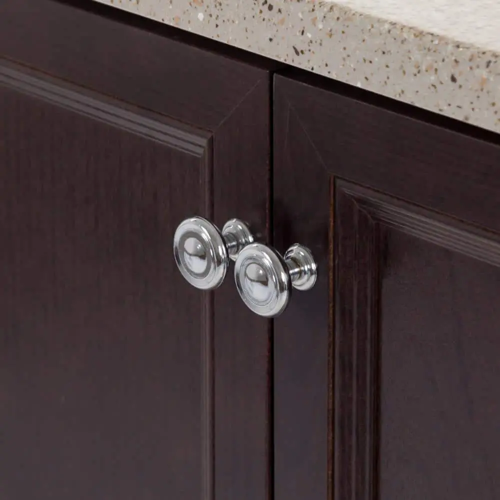 The 30.5-inch W Delridge bathroom vanity in chocolate features a two-door cabinet and a full-extension drawer, topped with a cultured marble vanity top. This freestanding unit keeps your bathroom essentials organized, with a full-width base drawer and a two-door below-the-sink cabinet. Its inset recessed-panel design and polished chrome pulls create a warm, classic appearance.The one-piece cultured marble sink top includes an integrated rectangular white sink and showcases a caramel finish that resembles warm-toned granite with flecks of maroon, light orange, white, and various shades of brown. It also has a 2.19-inch H backsplash to protect your wall from moisture and water damage.