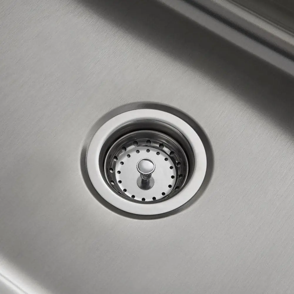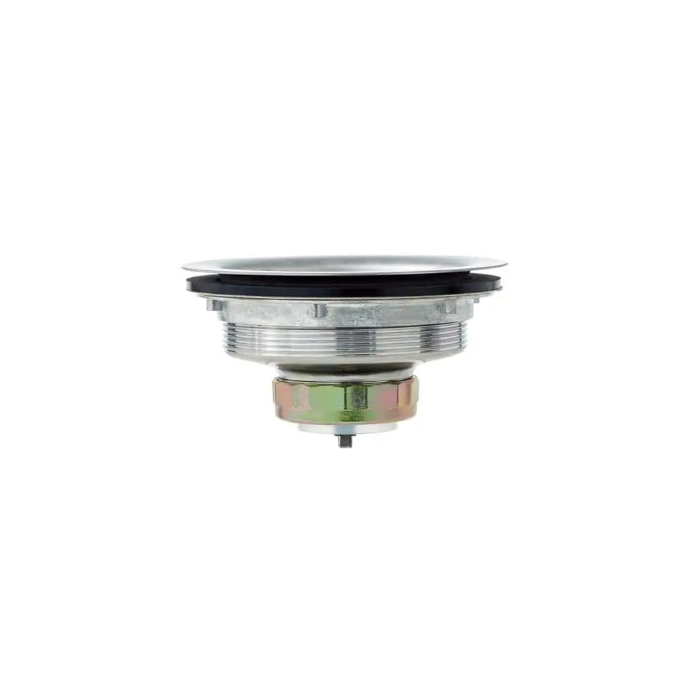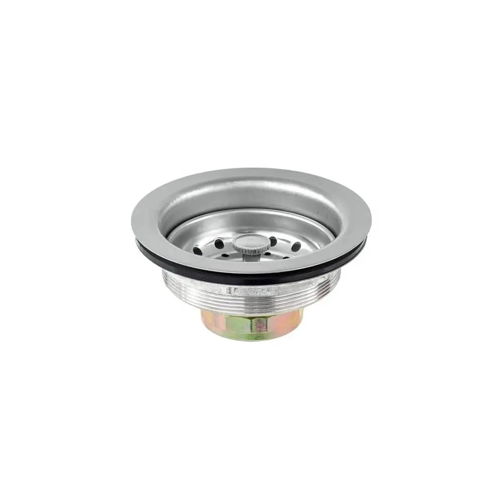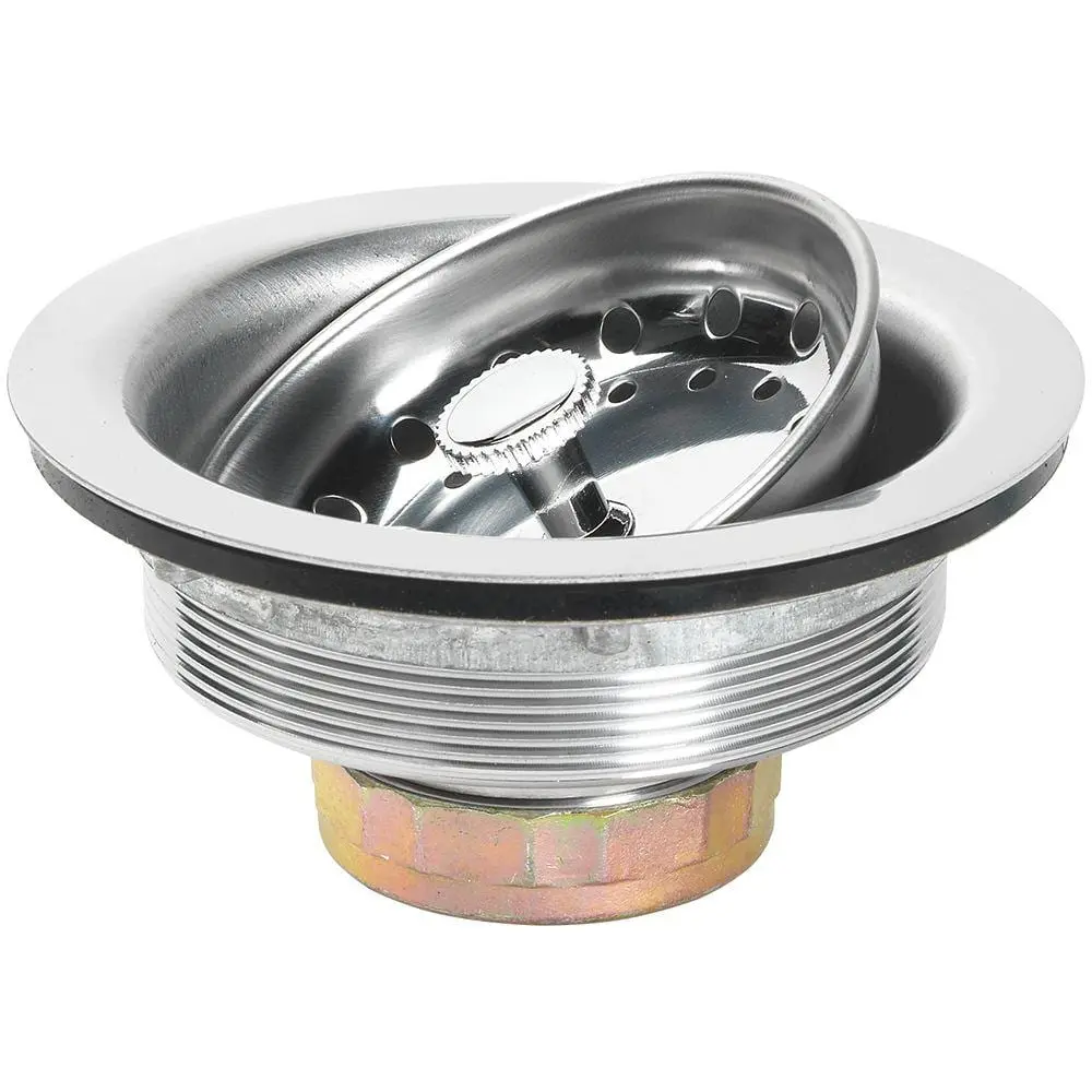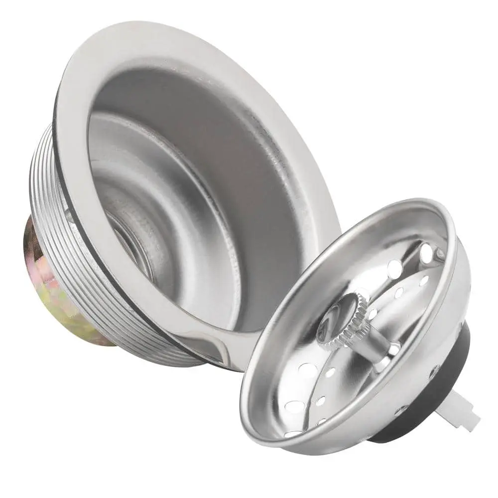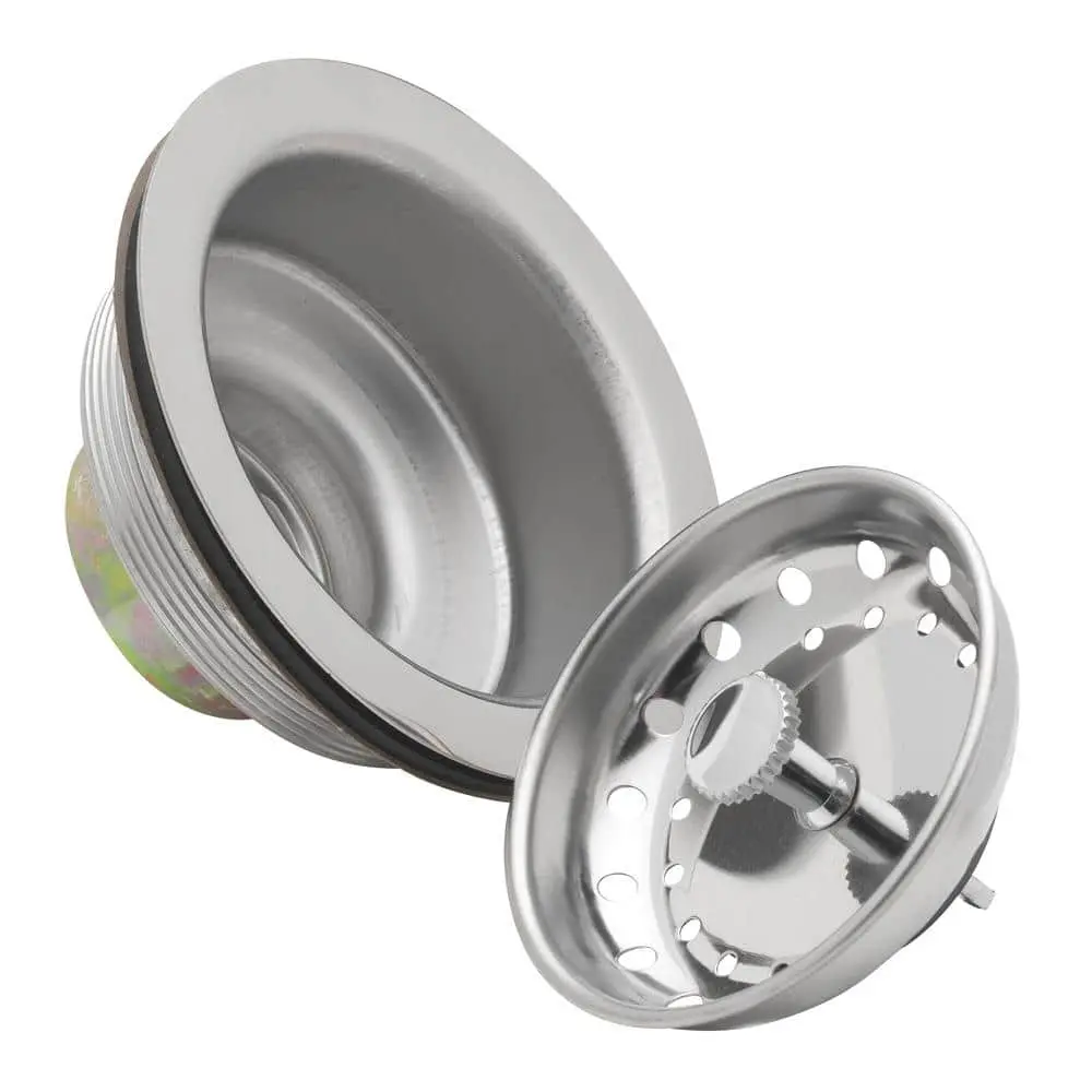 The Glacier Bay standard post kitchen sink strainer features a durable stainless steel finish. It includes a basket that prevents debris from entering the drain and can be easily removed for cleaning. The stopper basket has a post for added stability and a rolled edge design for safety. Made from stainless steel, this strainer is corrosion-resistant and built for long-lasting performance, making it ideal for most sink types.