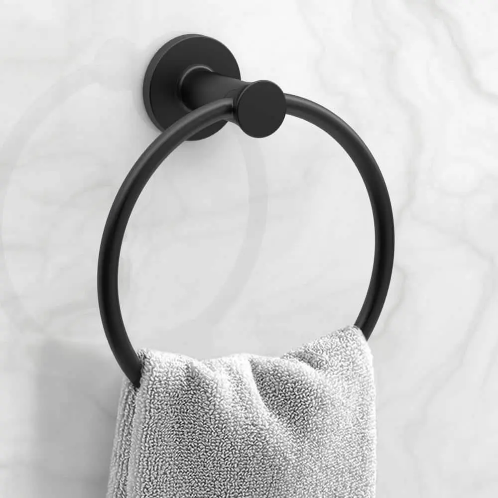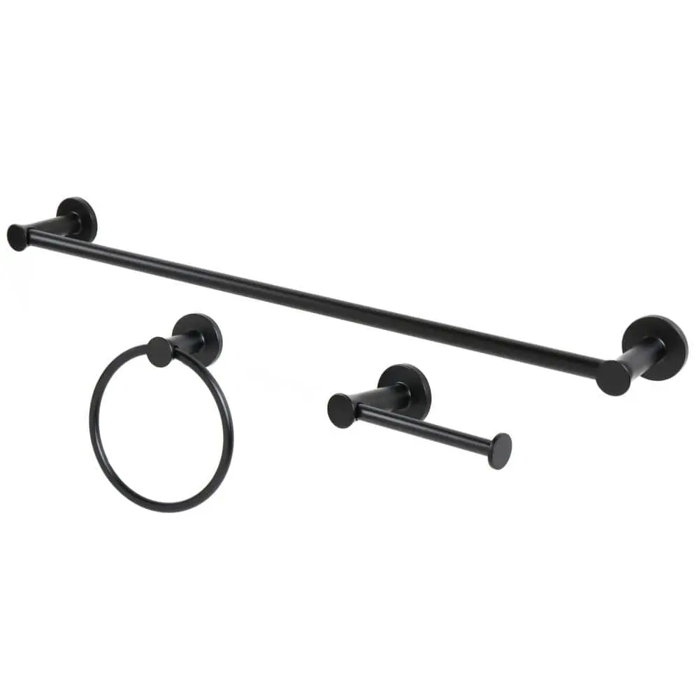 Elevate your bathroom with the Glacier Bay collection, featuring a sleek transitional style inspired by European design. The Single Post Toilet Paper Holder, with its Euro-style single post and matte black finish, adds a touch of elegance while ensuring durability. Complementing this aesthetic, the Lucien Towel Ring and 24-inch Towel Bar are designed to seamlessly integrate with a variety of bathroom decors. Together, these accessories create a cohesive look that enhances any space, blending functionality with timeless appeal.