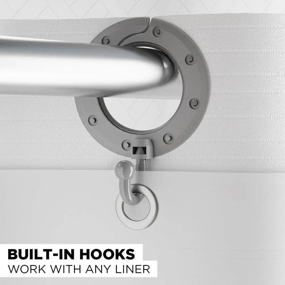 The InstaCurtain Ottoman Stripe Shower Curtain offers a luxurious look that transforms your bathroom into a serene retreat. With its elegant white horizontal stripes, this fabric curtain adds a touch of sophistication to your shower area.What truly sets the InstaCurtain apart is its convenient built-in hooks, eliminating the need for separate shower hooks or rings. You can hang it effortlessly in just three easy steps, making it a hassle-free addition to your bath space. Experience the perfect blend of style and simplicity with this all-in-one curtain solution.