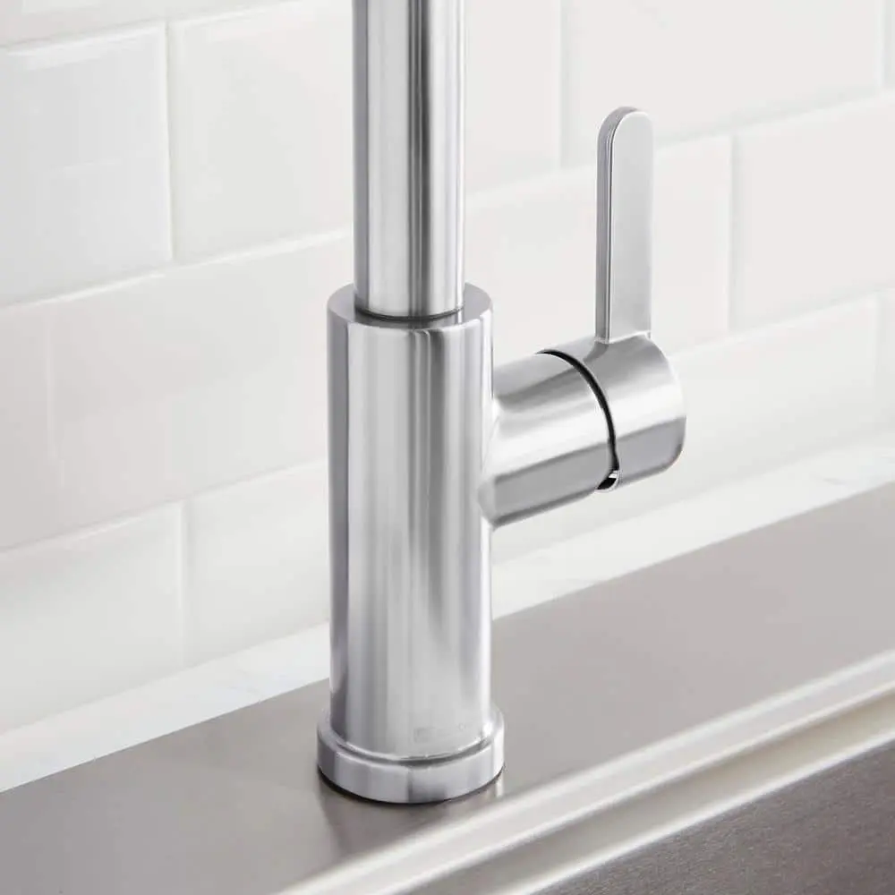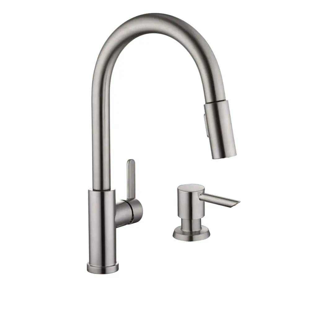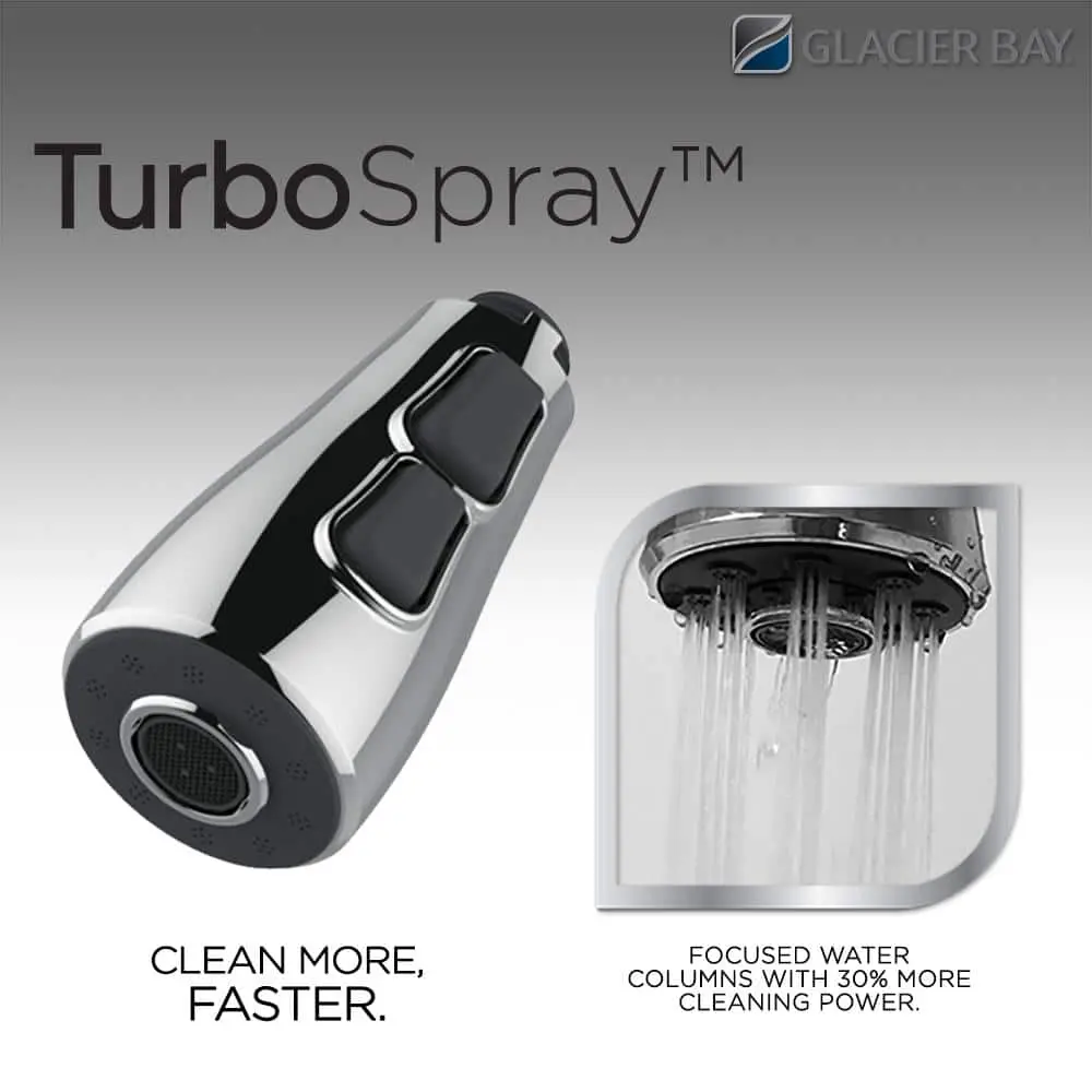 The Glacier Bay Paulina Single-Handle Pull-Down Sprayer Kitchen Faucet in Stainless Steel is designed for efficiency and convenience. Featuring TurboSpray for powerful cleaning and an aerated spray, it offers easy water temperature control with a 1.8 GPM flow rate. The faucet’s ceramic disc cartridge ensures drip-free performance. Installation is simplified with the FastMount system, making it an ideal choice for any kitchen.