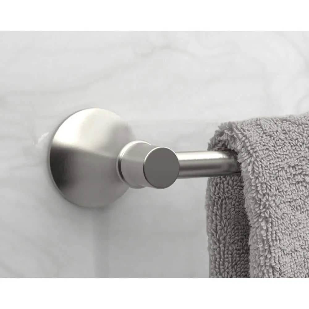 Designed in a popular transitional style, the Glacier Bay single post toilet paper holder draws inspiration from European design. This durable accessory features a euro-style single post with a bolt on the end, finished in matte black to enhance any bathroom aesthetic. Its attractive design complements a wide range of bathroom decor, making it a versatile choice for your space. The Sadira towel ring also reflects this transitional style, ensuring a cohesive look throughout your bathroom.