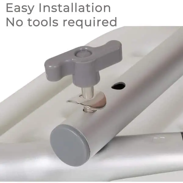 The Adjustable Bath and Shower Seat with Back is designed for use in shower stalls or bathtubs. It features a durable plastic seat with easy-to-grip handles and a notch for holding a handheld shower spray. The flared aluminum legs help prevent tipping, while the slip-resistant rubber tips enhance stability for a safe bathing experience.