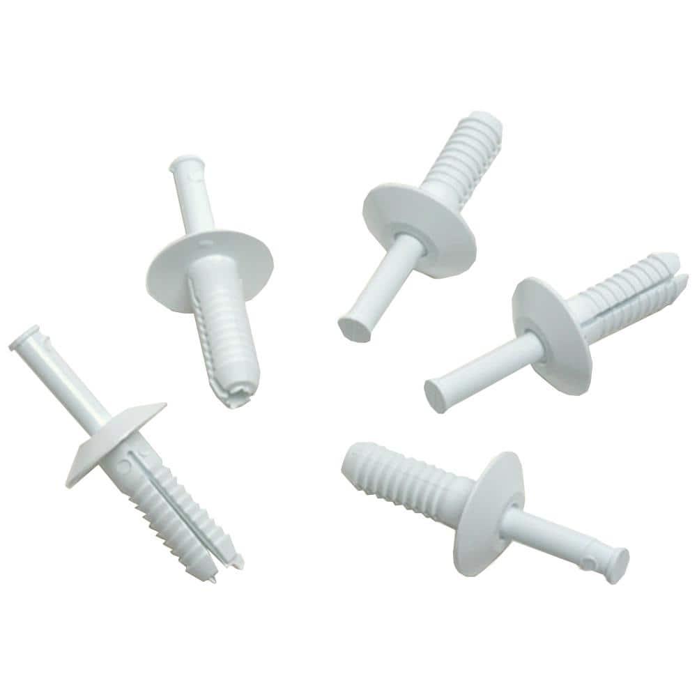 Transform your wall panels into a seamless masterpiece with our 3/4 in. White Nylon Rivets (50-Pack). Perfectly engineered for creating a polished finish, these rivets are your go-to solution for a professional appearance, even when installing over rough or uneven substrates. Elevate the quality of your work and achieve that flawless look with ease!