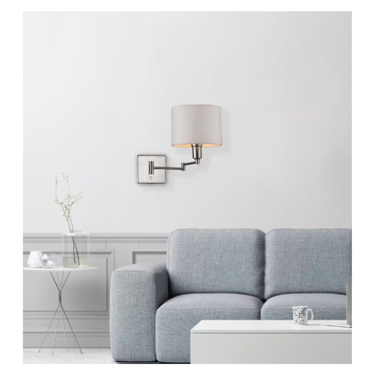 Globe Electric introduces the Anderson 1-Light Wall Sconce in brushed steel. This elegant fixture can be plugged in or hardwired and includes a rotary On/Off switch. The white fabric drum shade adds a traditional element, while the brushed steel finish adds a modern touch