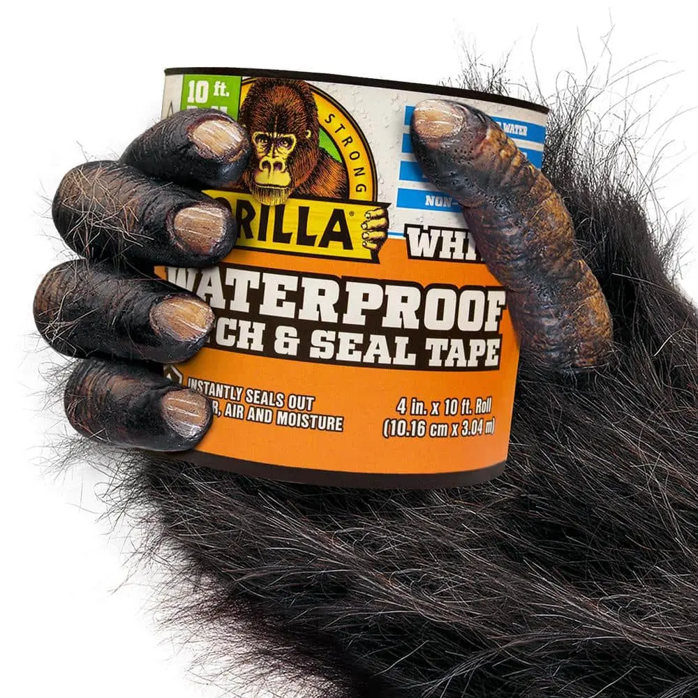 The Gorilla 10 ft. Waterproof Patch and Seal Tape White provides a waterproof seal, creating a strong, watertight bond on a variety of surfaces. Its flexible design allows it to conform to uneven areas for a secure and reliable hold. Engineered for ultra-strong adhesion, this tape bonds instantly to stop leaks and cracks. Built to last, it is weather-resistant, standing up to extreme temperatures, moisture, and UV exposure. Perfect for versatile use, it effectively patches roofs, gutters, pipes, and more. With a size of 10 ft., it offers extended repair coverage, while the white color blends seamlessly with light-colored surfaces for a clean finish