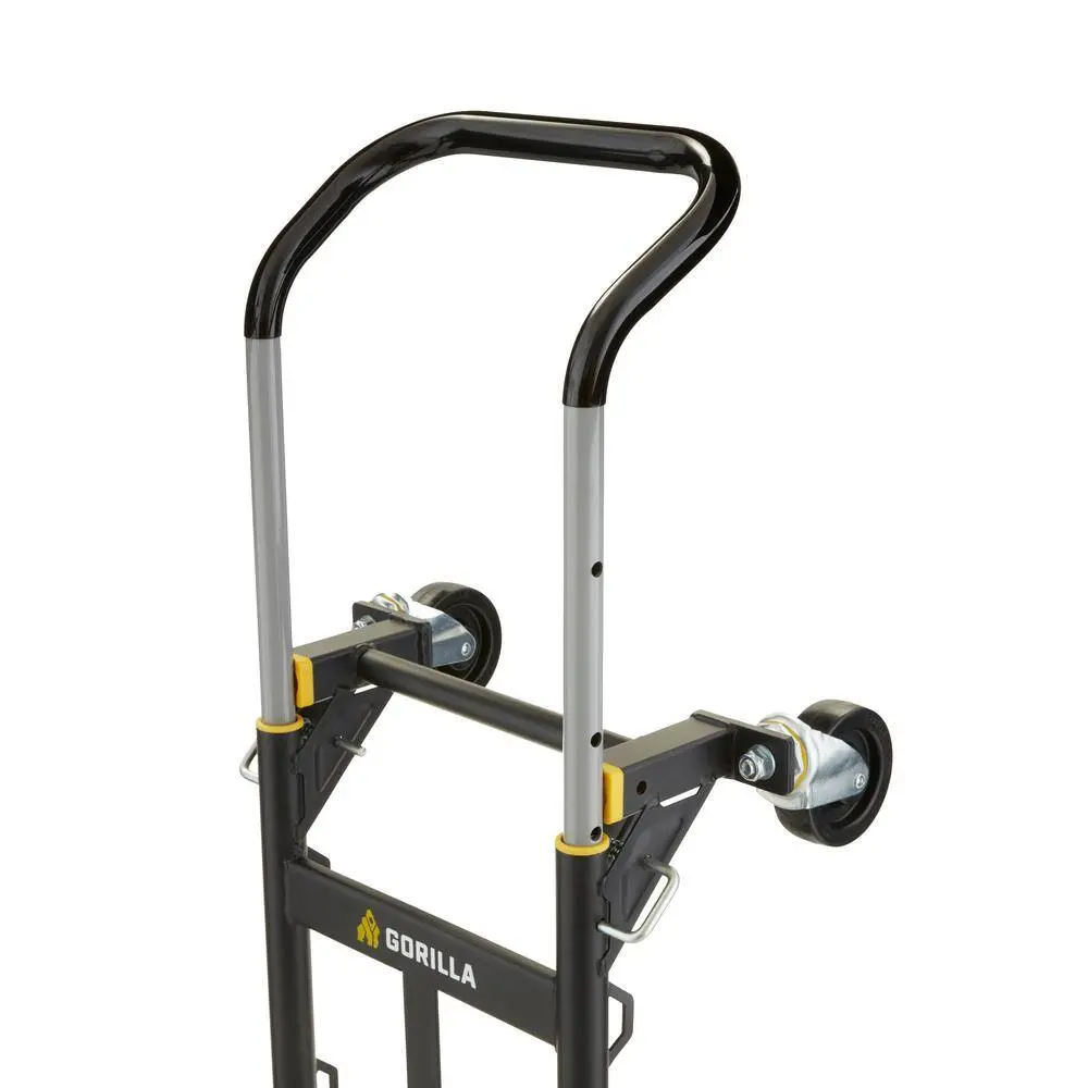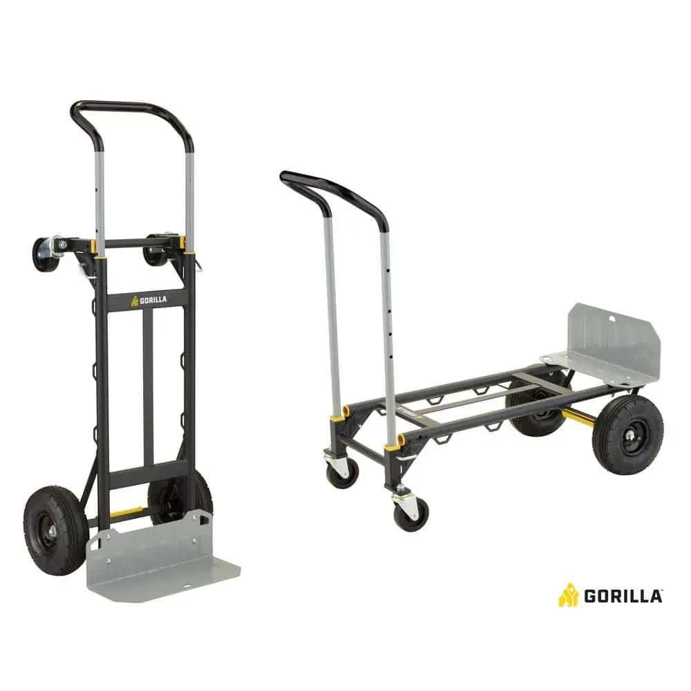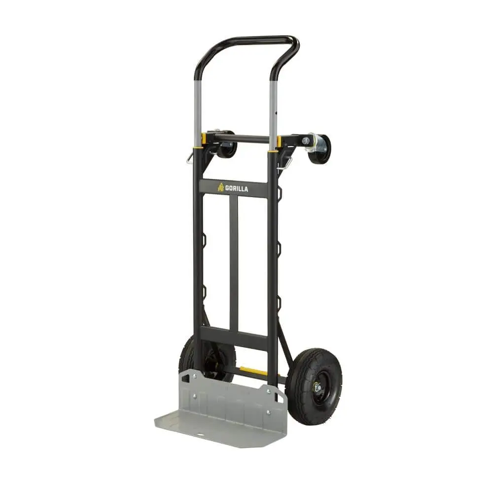 The Gorilla 800 lbs. Capacity Convertible Steel Hand Truck offers an impressive 800 lbs. capacity, making it perfect for transporting heavy loads. Its convertible design allows for a seamless transition from a hand truck to a flatbed, providing versatility for different tasks. The wide dual mode adjustable height handle ensures comfort and adaptability during use. Crafted from durable steel construction, this hand truck is built to last for heavy-duty use. With a safe and simple conversion, switching between modes is quick and secure, making it ideal for moving large or bulky items with ease.
